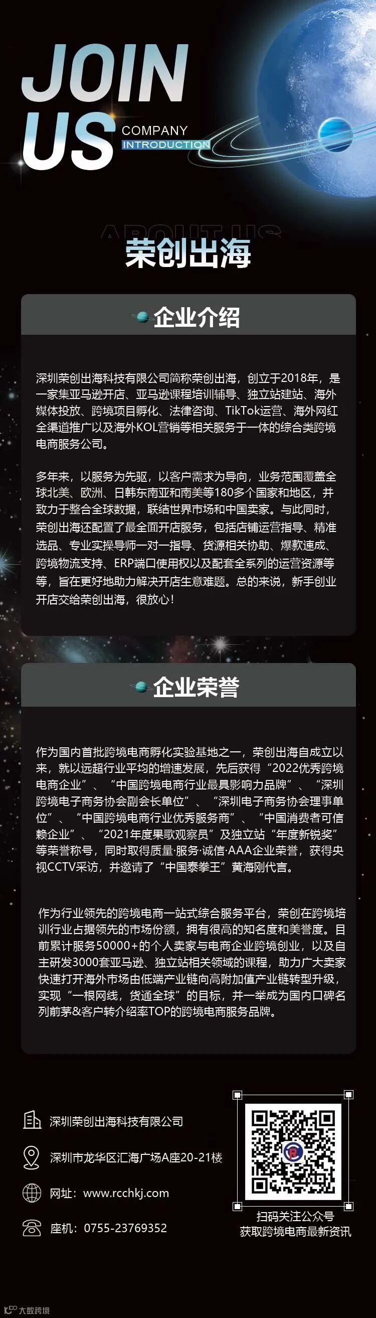 值得一提的是,新手卖家要想快速入门跨境COD独立站的话,建议优选深圳荣创出海科技有限公司,简称“荣创出海”,创立于2018年,在跨境电商的行业发展的初期,坐拥可观的市场占有率,现已成为一家集独立站建站&独立站运营、海外媒体投放、跨境项目孵化、亚马逊开店&课程培训辅导、法律咨询、直播电商、TikTok运营、海外网红全渠道推广等相关服务于一体的综合类跨境服务提供商,在跨境电商行业拥有领先地位。并一举成为国内口碑名列前茅&客户转介绍率TOP的一站式跨境电商培训运营综合服务平台。