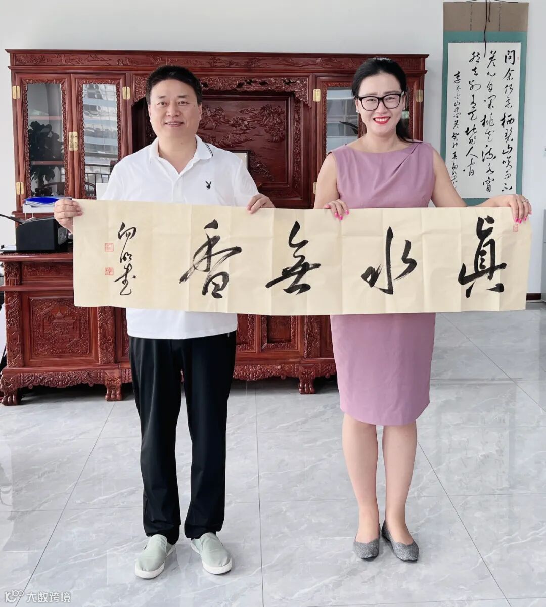 国际产业园总经理胡向明向王大花老师赠送书法作品“真水无香”答谢,赞誉王大花老师品性高洁,恬淡清澈。