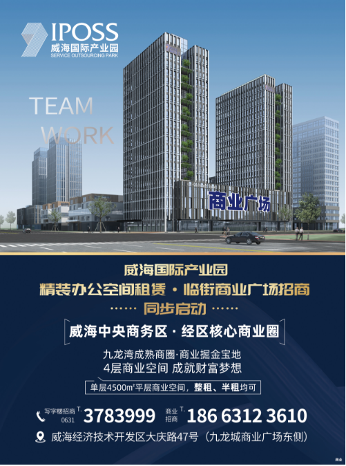 威海国际产业园,位于威海经区大庆路与香港路交汇处,坐拥威海CBD中央核心区位,总投资2亿美元,精心筑造的28万㎡产融服务综合体,是集科技、信息、研发、电商、办公、展示、商务、休闲、旅居为一体的新时代产业园区。基于链接一切、协同发展、聚变未来的共赢商务理念,链接九龙湾高端滨海居住区、九龙城品牌商业区、产业孵化区、酒店公寓区、生态休闲区,依托山东大学、哈尔滨工业大学高教科研优势,构筑"产城、产融、产居、产教”四位一体的产业生态,实现"生产、生活、生态”三生融合,定位“科技、生态、文化、幸福”的产业园区,致力于高科技企业之问的联盟共赢,区域内业态互补,跨界联合,资源交互,共同驱动城市新经济飞跃发展。