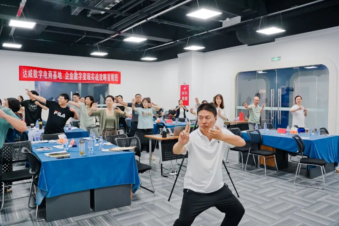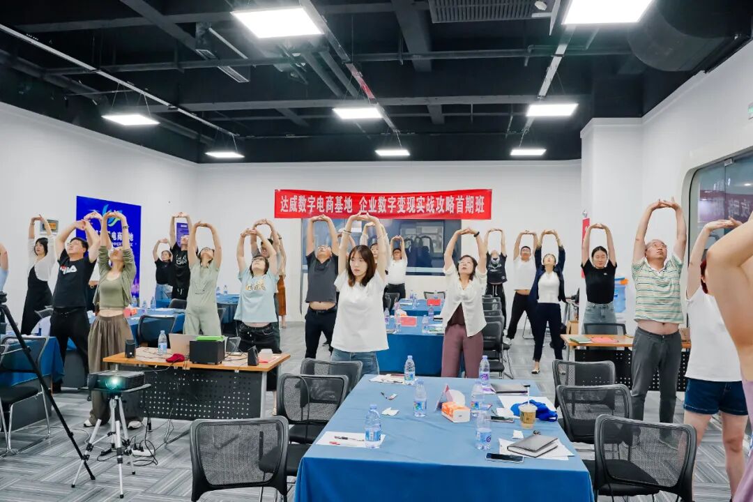 培训间隙,产业园总经理胡向明带领大家练习“八段锦”提振精神。