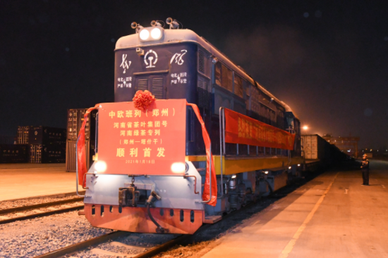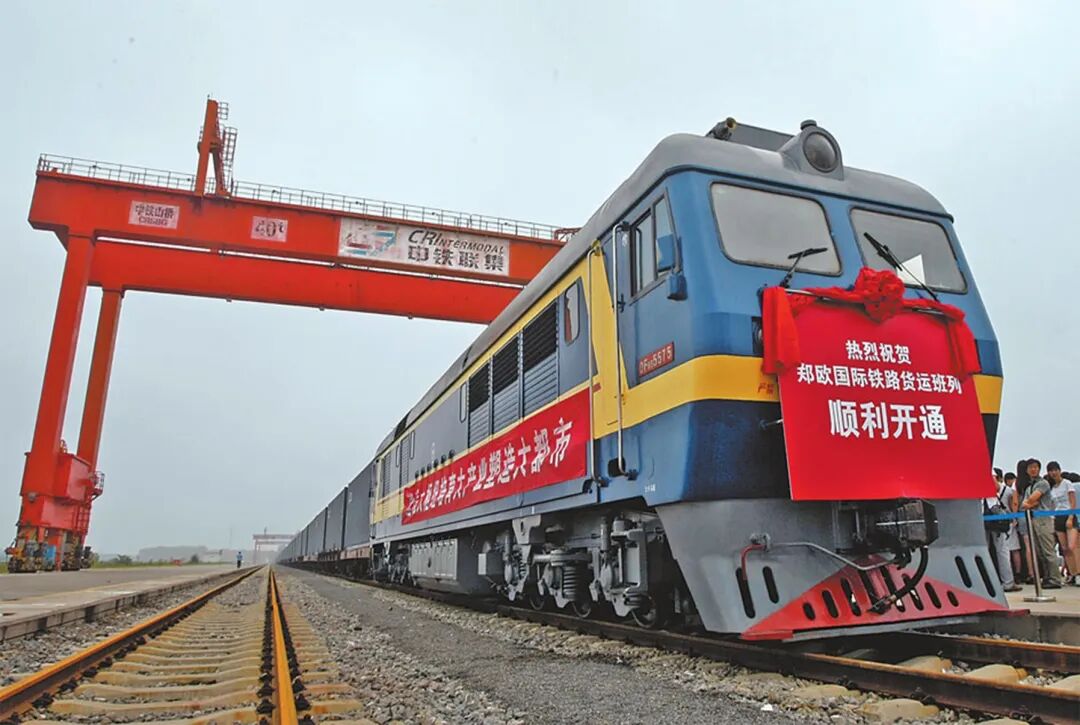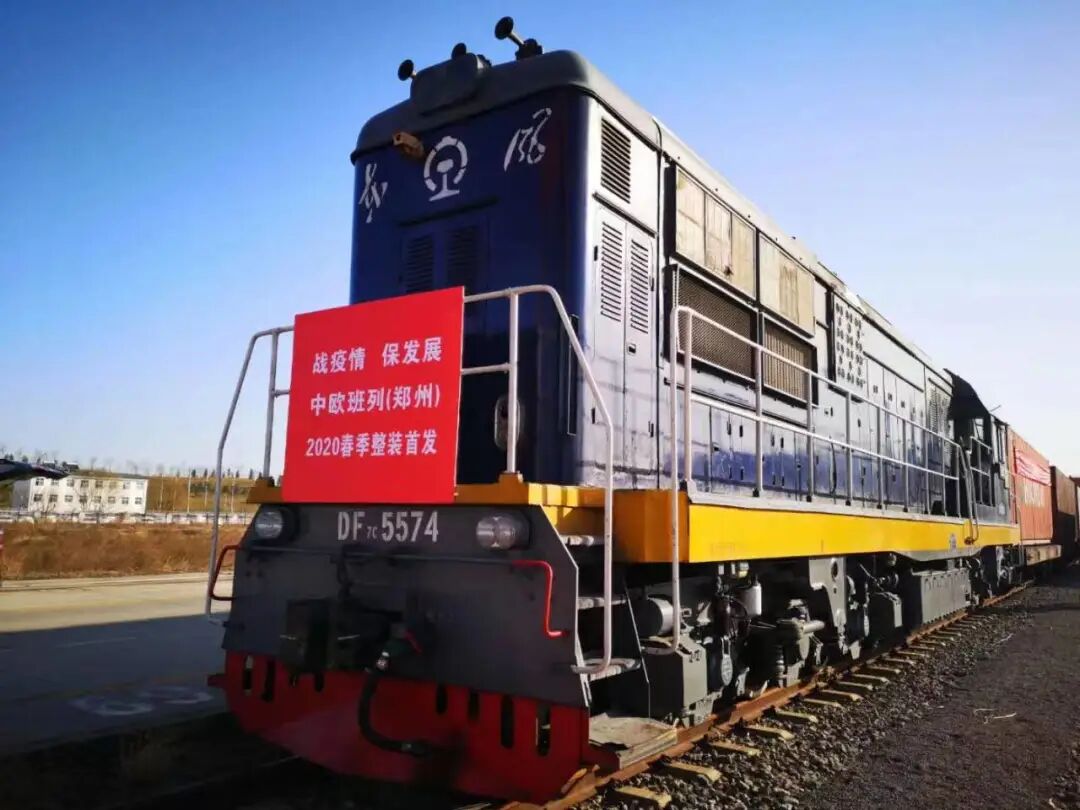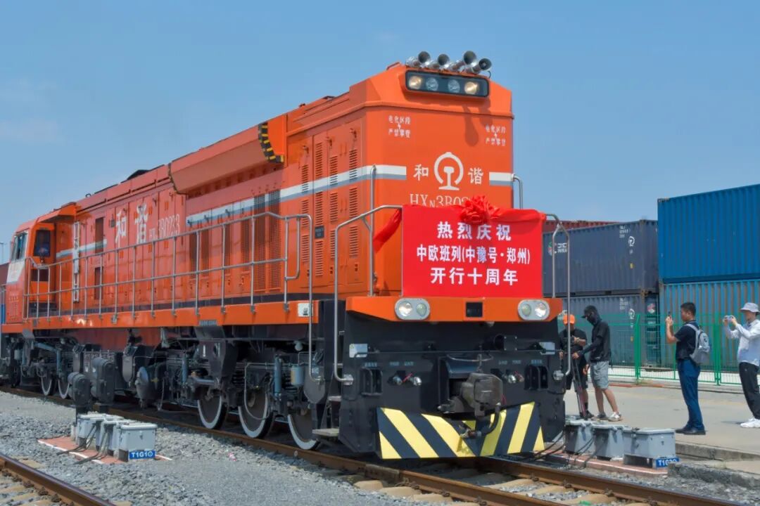 图为中欧班列(中豫号)开行十周年纪念班列发车
