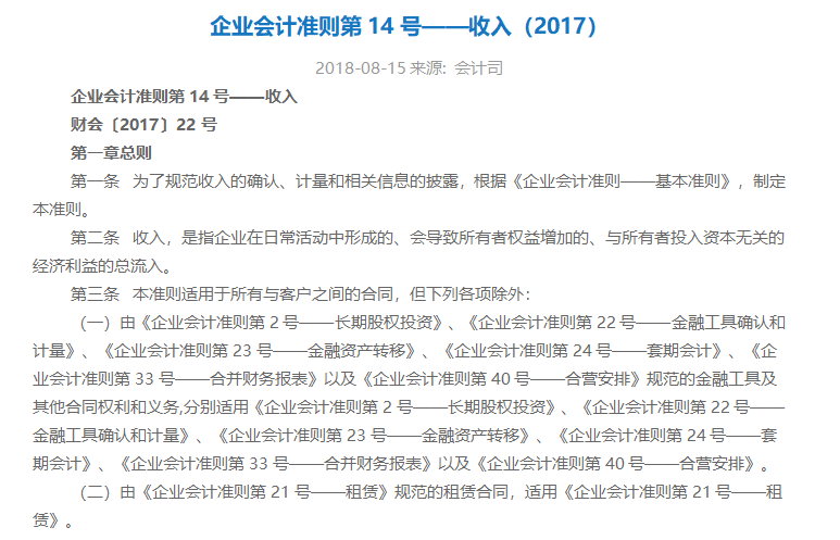 《<企业会计准则第14号----收入>应用指南2018》第31页最后一段、第79页等相关内容,需要完整准则的小伙伴,可以联系小编领取哦!