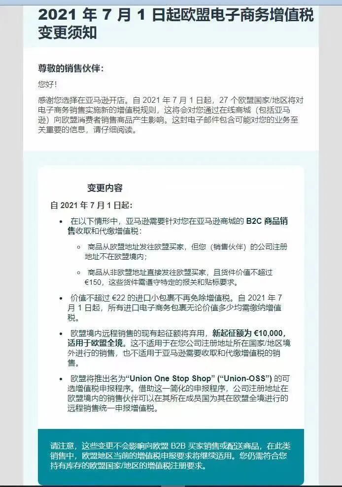 3、废除货值低于€22免征进口增值税的政策,目前货值低于€22进口到欧盟国家是免征VAT的,2021年7月1日后,所有进口商品无论货值多少均需要缴纳VAT。