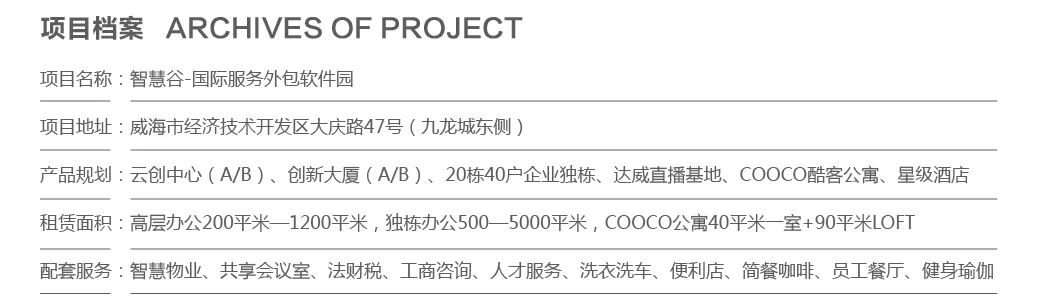 国际服务外包软件园优据威海发展核心区,高铁站、机场、威海港等枢纽交汇。总建筑面积约28万平方米,包括5A级云创中心、创新大厦、企业花园独栋、综合展示中心,商务酒店、COOCO酷客人才公寓等。聚焦新一代信息技术、海洋生物、新能源、新材料、电商直播、跨境电商等高新产业。打造集研发、办公、商务、文化、生活会展于一体的完整城市型生态园区。