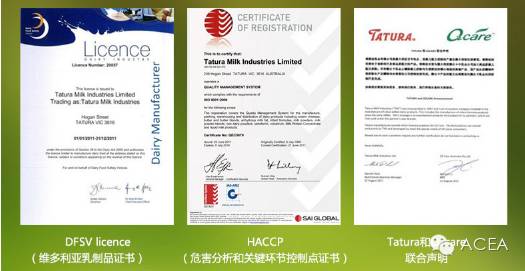 Ozcare婴幼儿配方奶粉是由澳大利亚最大的婴儿奶粉厂TATURA生产的。其产品采用100%澳洲奶源,100%在澳洲制造完成,其世界先进的生产工艺,堪称澳洲奶粉的最高水平。TATURA通过了BRC全球食品标准的认证,这是TATURA以及Ozcare提供安全、一致、优质产品承诺的一部分。