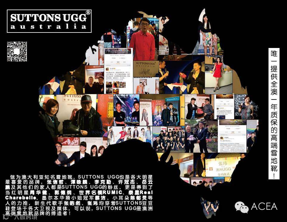 SUTTONS UGG(萨顿雪地靴)是墨尔本shoppingcentres连续5年销量第一的雪地靴品牌,也是墨尔本商业中心最高端消费人群的最大占有率的雪地靴品牌。其雪地靴业务遍及墨尔本、悉尼、珀斯、凯恩斯、黄金海岸等澳洲各主要城市。目前公司在澳洲拥有9家专卖店及专柜。