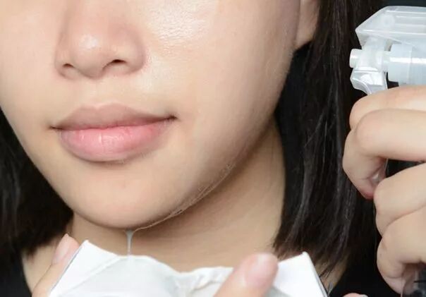 但是喷在手背或者手臂,大多则是清水状的液体流淌下来。
