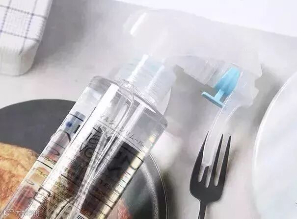 它的外观就是一只透明的喷雾瓶,瓶口的设计是防挤压的卡环。不用了可以再套上去防止撒漏,真的很人性化~
