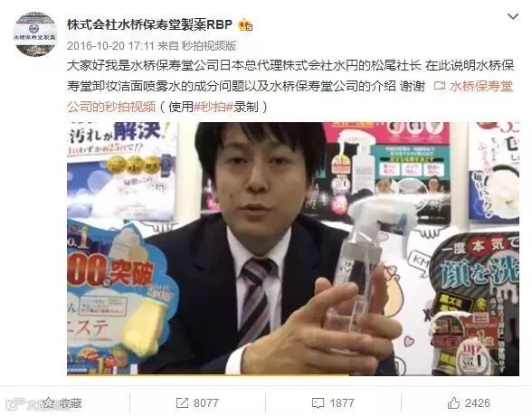 人红是非多,物品也一样。前段时间清洁喷雾的成分遭到了质疑,该株式会社长立即拍了一段澄清视频!微博上就可以看到,有兴趣可以去看看。网友纷纷感叹,老板都亲自上了,真用心,经营一个牌子不容易~