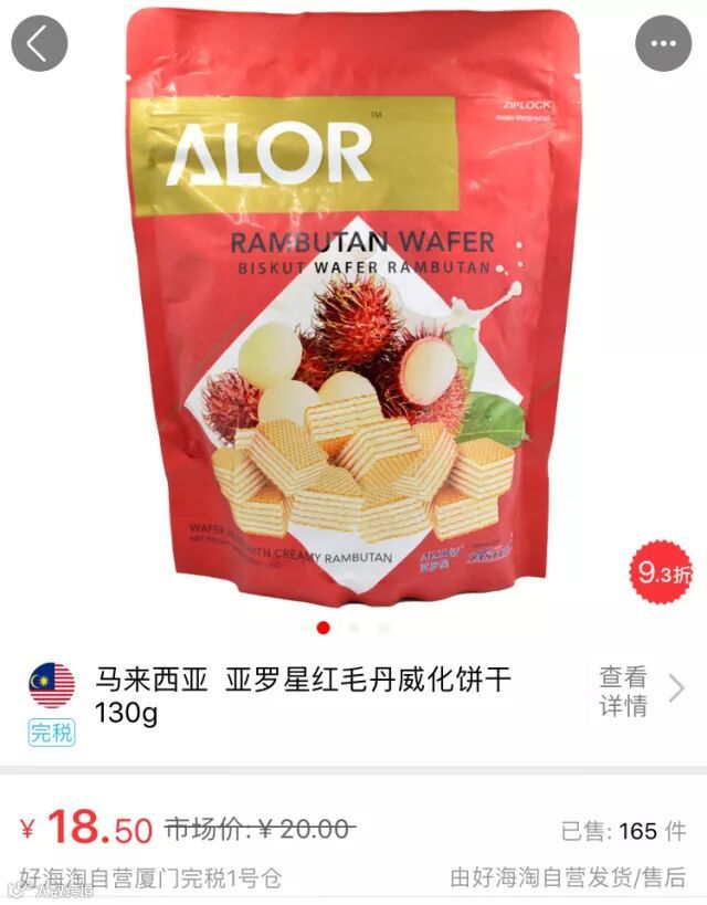 马来西亚 亚罗星红毛丹威化饼