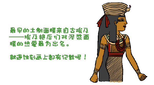 史料证明最早与面膜美容相关的是埃及艳后克丽奥佩脱拉七世(公元前69年-前30年)。古埃及的蚀刻画上记载了当时人们浸浴海泥泥浆,并将泥浆涂抹在脸上保养肌肤的情景。现代科学证明,海泥中含有大量矿物质和微量元素,能加速新陈代谢,增加皮肤的活力和明亮度,对延缓衰老有明显的作用。艳后美容秘方终于大白于天下。