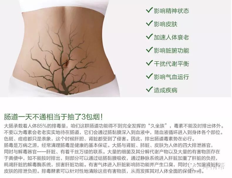 宿便堆积,产生过多的肠毒,不仅直接损伤肝功能,而且可以通过血液破幻全身各系统,危害每一个细胞健康。肠毒是万病之源,经常清理肠毒,是健康的基本保证。