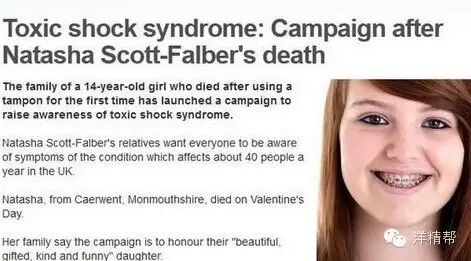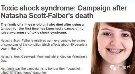 近日,一个来自英国蒙默思郡的14岁女孩,因初次使用卫生棉后发生中毒性休克。