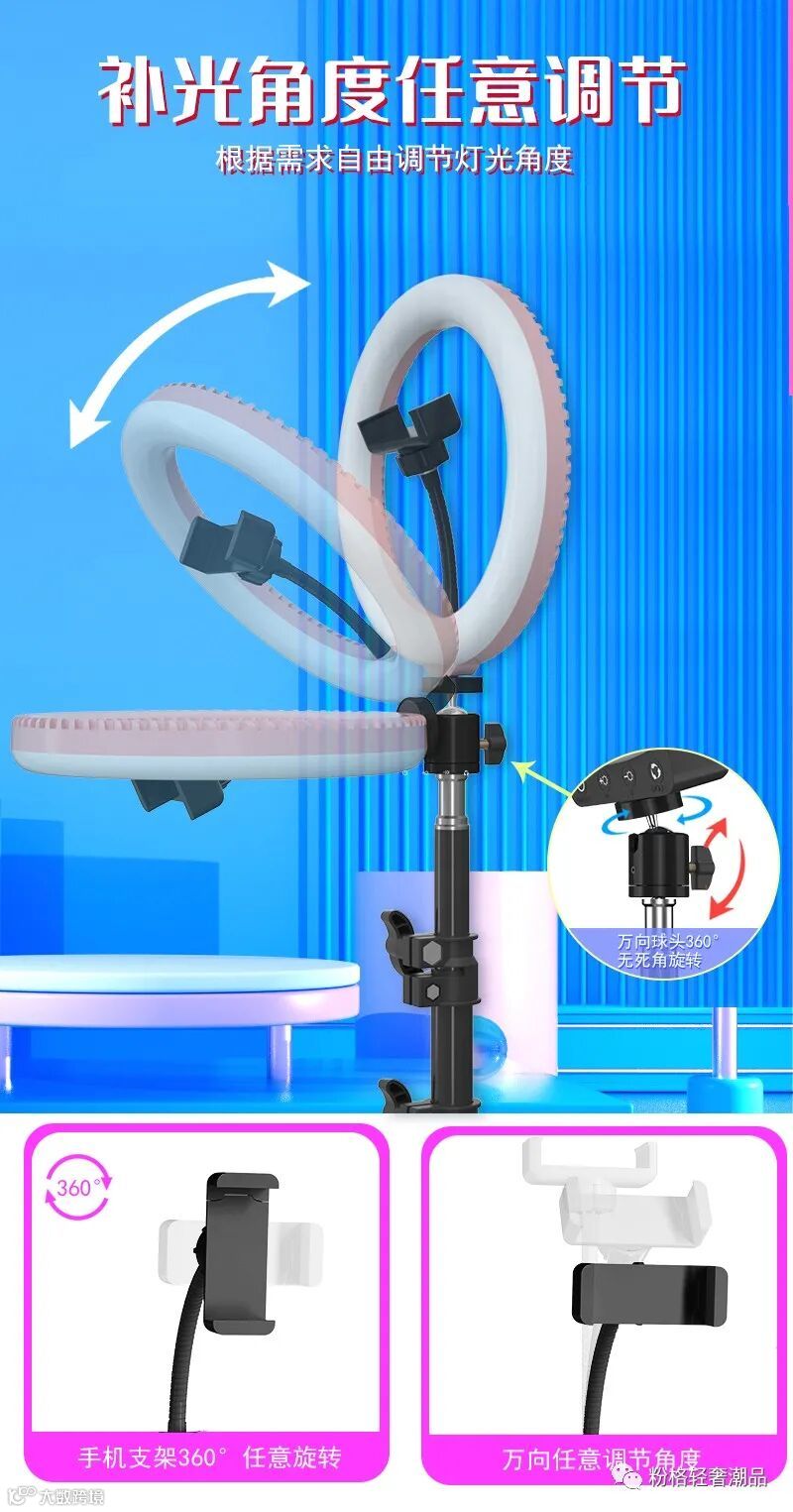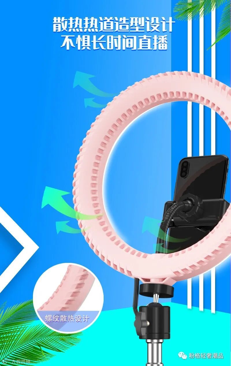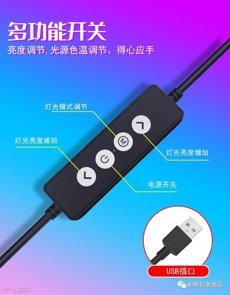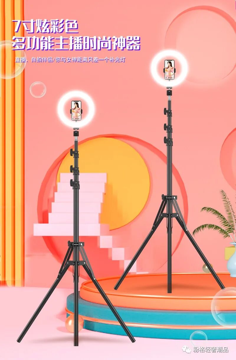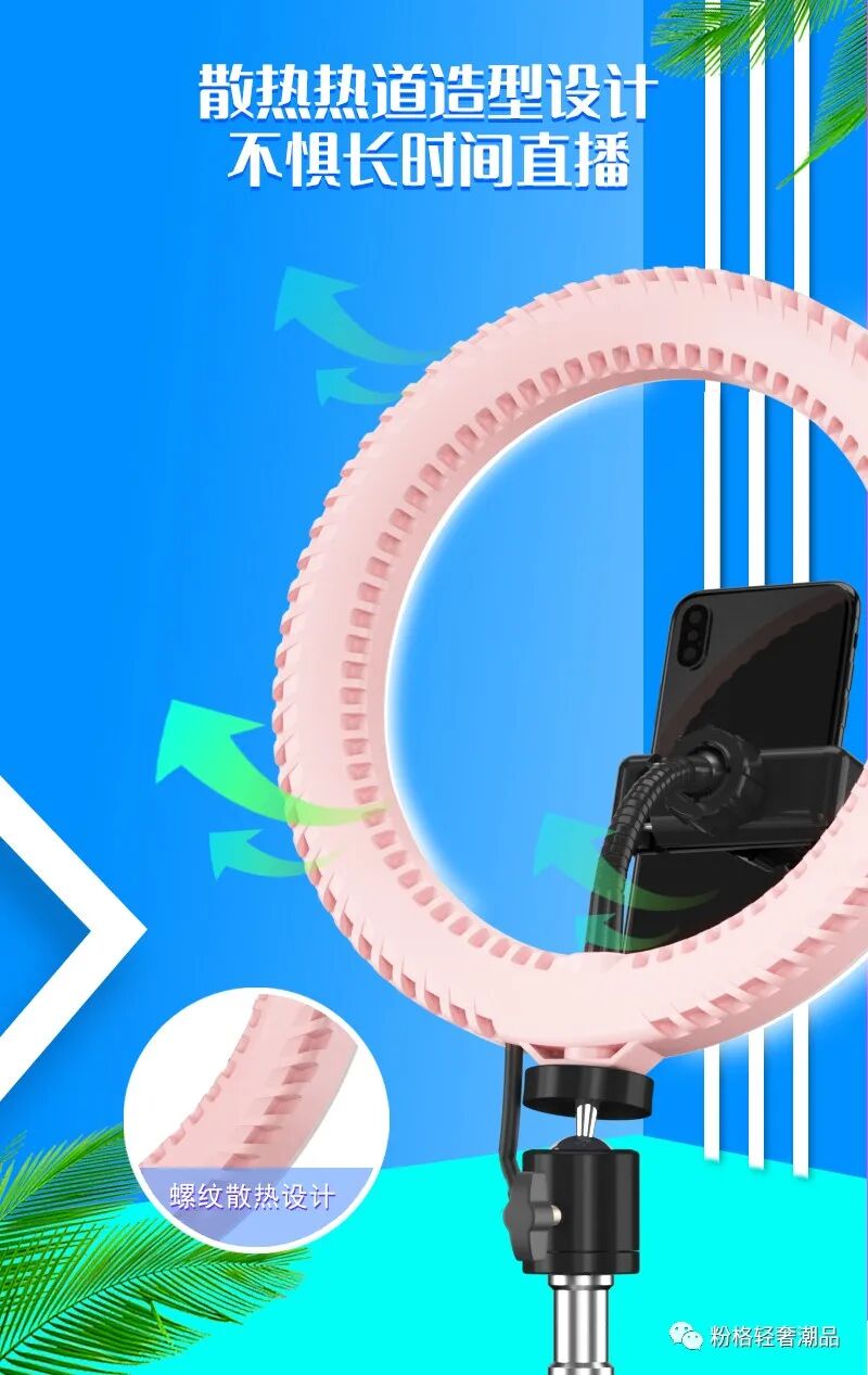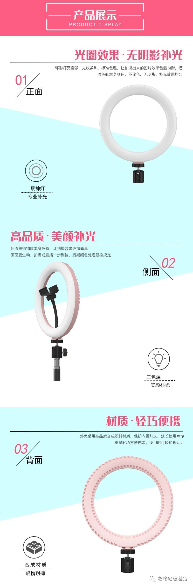 7寸RGB炫彩跑马灯网红直播环形补光灯RK-62是一款带跑马灯炫彩色多种流光特效氛围控场直播灯,神秘时尚炫彩流光效果,赤、橙、黄、绿、青、蓝、紫等多色灯光组合,时而它像彩虹,时而它像DJ氛围灯,时而它是呼吸灯,可直播、装饰、催眠等,7寸RGB炫彩跑马灯网红直播环形补光灯RK-62版是一款多功能主播时尚神器,线控控制调节色温、亮度、RGB模式,白光高冷女神范,暖光萌妹子,各种直播风格轻松控场,自带360°旋转云台可实现无死角万向打光。