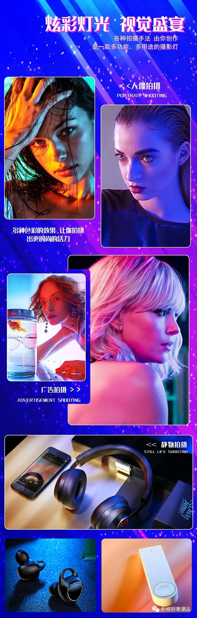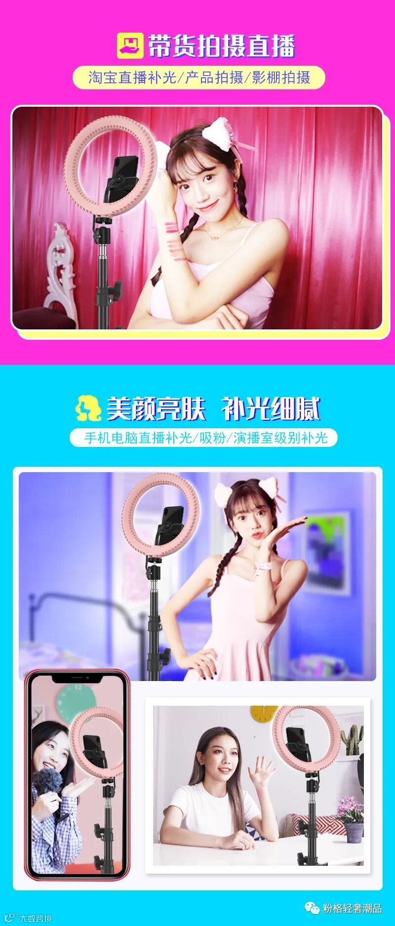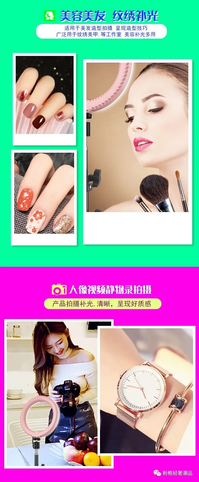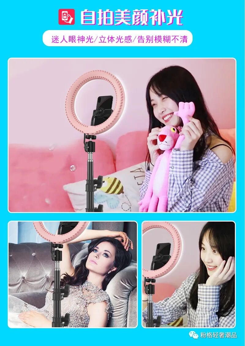 7寸RGB炫彩跑马灯网红直播环形补光灯RK-62是一款带跑马灯炫彩色多种流光特效氛围控场直播灯,神秘时尚炫彩流光效果,赤、橙、黄、绿、青、蓝、紫等多色灯光组合,时而它像彩虹,时而它像DJ氛围灯,时而它是呼吸灯,可直播、装饰、催眠等,7寸RGB炫彩跑马灯网红直播环形补光灯RK-62版是一款多功能主播时尚神器,线控控制调节色温、亮度、RGB模式,白光高冷女神范,暖光萌妹子,各种直播风格轻松控场,自带360°旋转云台可实现无死角万向打光。
