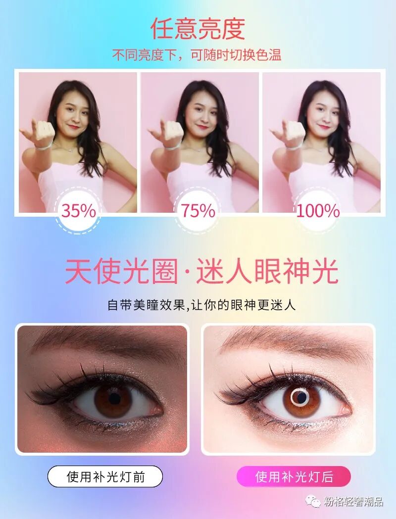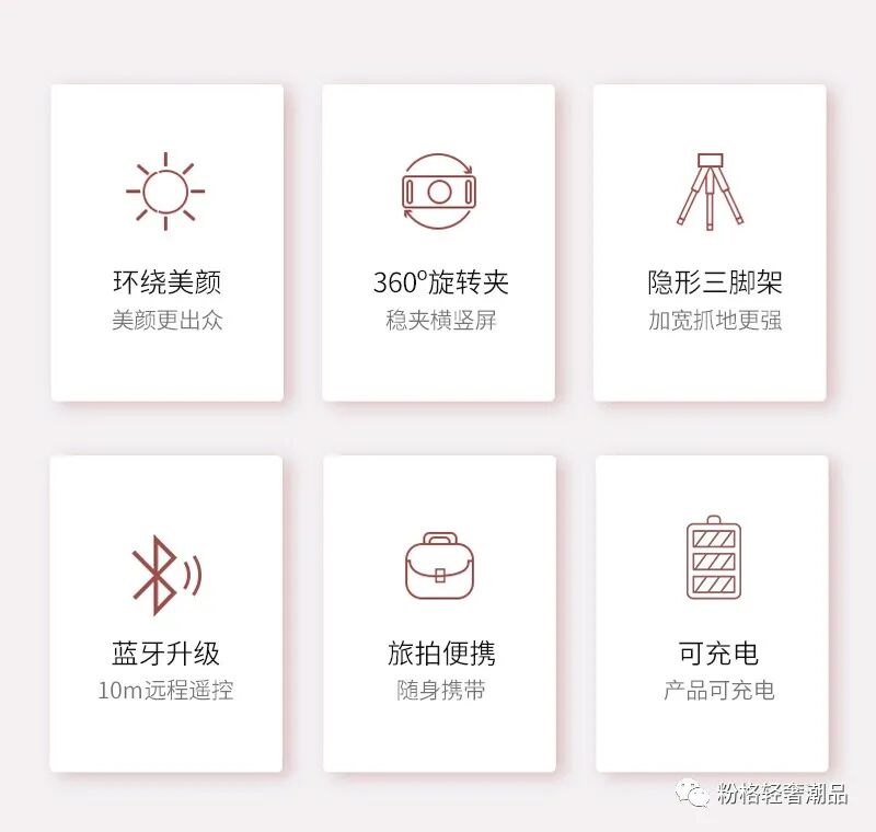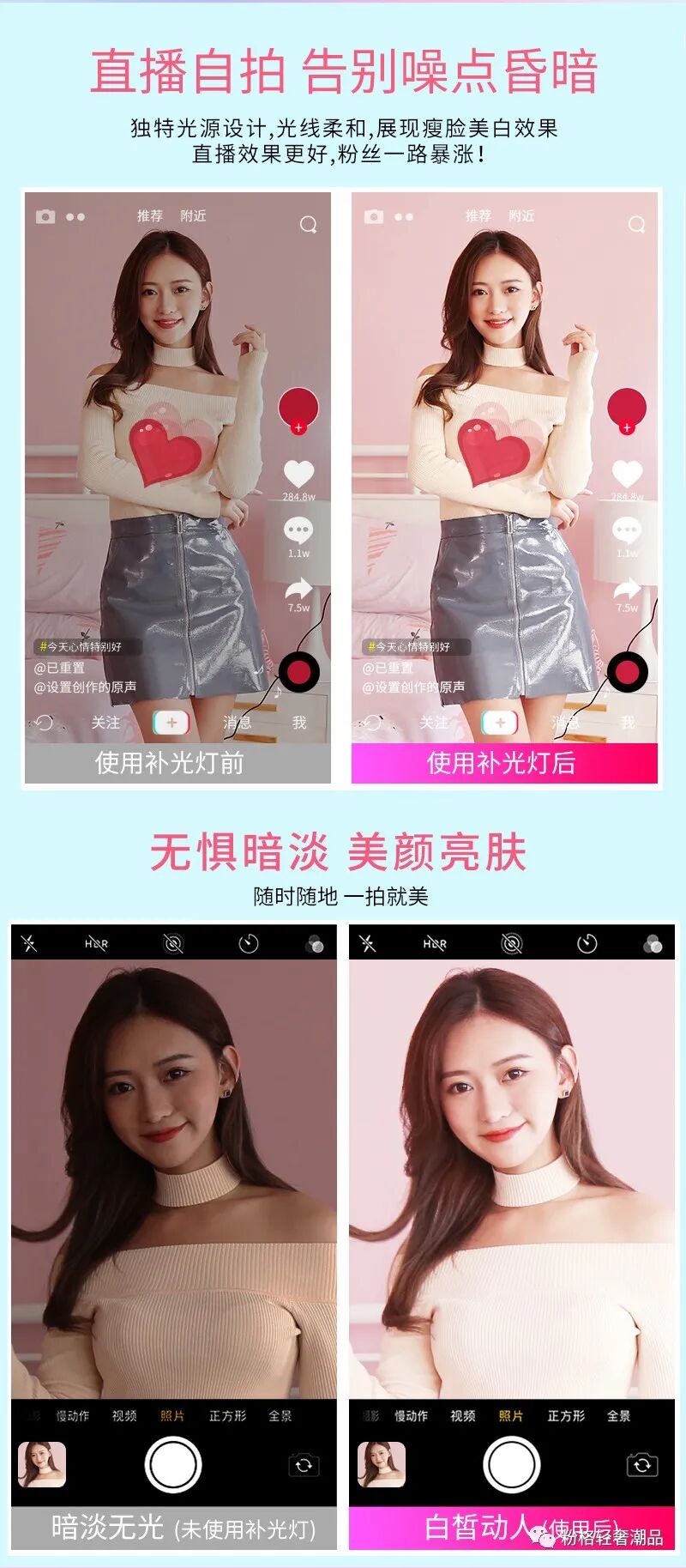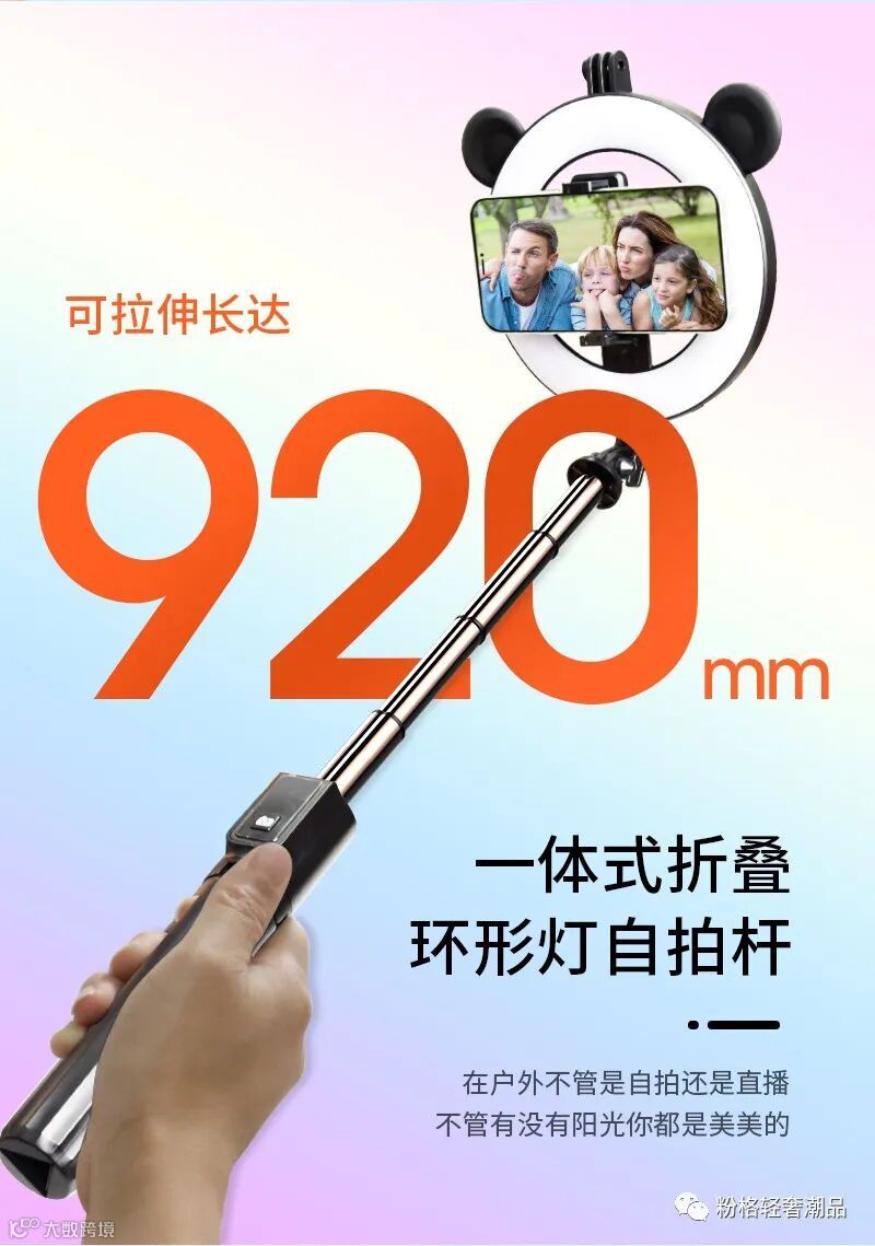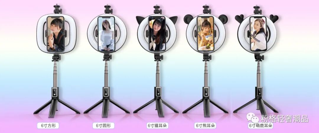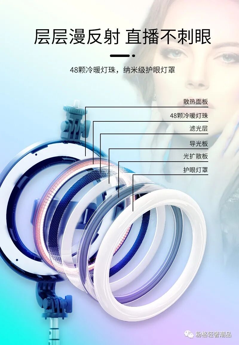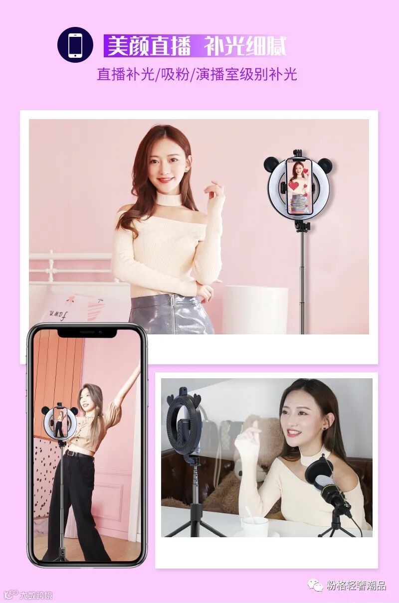 智能明肌直播支架RK-02是一款一体式环形灯自拍杆、美颜灯直播支架、网课学习AI护眼灯桌面支架、横竖拍蓝牙器自拍杆等,6寸美颜灯可做入门直播桌面支架使用,进口柔光罩材料搭配80颗冷暖灯珠打破黑暗噪点,让你直播眼有光 脸有神,三挡亮度调节,让你每个场合都是美美的女王。便携折叠设计,收纳自如,拉伸长92厘米折叠后仅22厘米,360度自由旋转,满足各种角度自拍。全铝合金伸缩杆与可收拢三脚架让拍摄更稳固,可卸蓝牙遥控器可更远距离自拍,解放双手拍出更美好的自己,自带电池,补光持久耐用,横竖拍夹子设计,让你自拍直播玩个够,有卡通版与普通版供你选择,5G直播短视频时代,赶紧下手抢购吧!