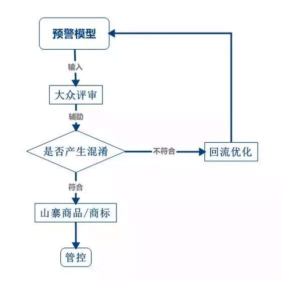 据介绍,这套流程目前已完成试运行:大数据对天猫品牌库做日常的对接和扫描,通过对商标(商品)做文字、图像等方面的比对,筛选出具有一定混淆度的商标(商品),这些被筛选出来的数据又将组成“山寨预警模型”,该模型会根据大数据输出的结果不断优化,反过来验证数据的精准性。