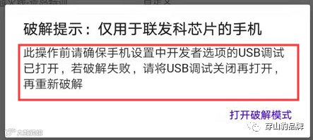 12.打开破解模式(联发科手机用户需要打开破解模式)