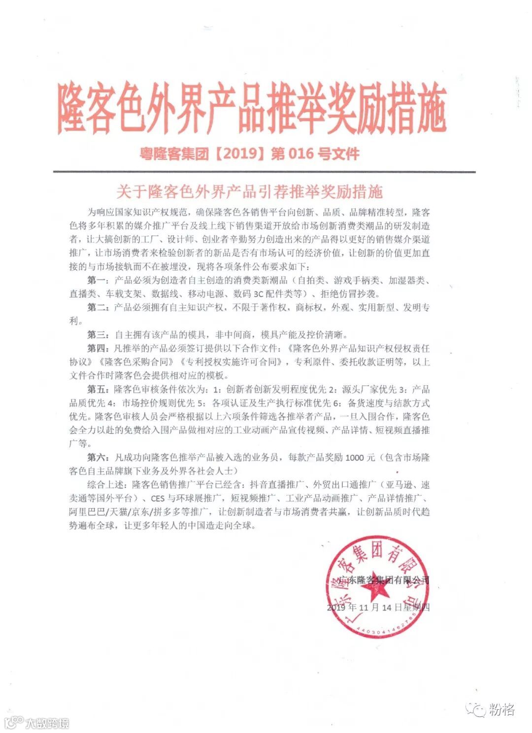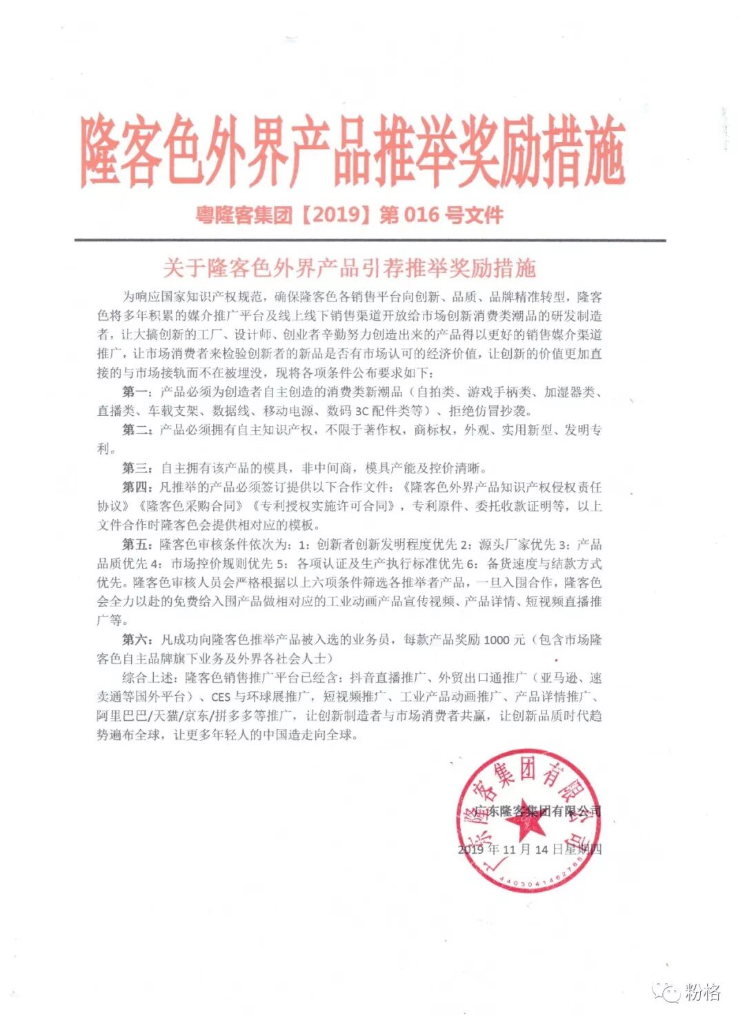 关于隆客色外界产品引荐推举奖励措施
