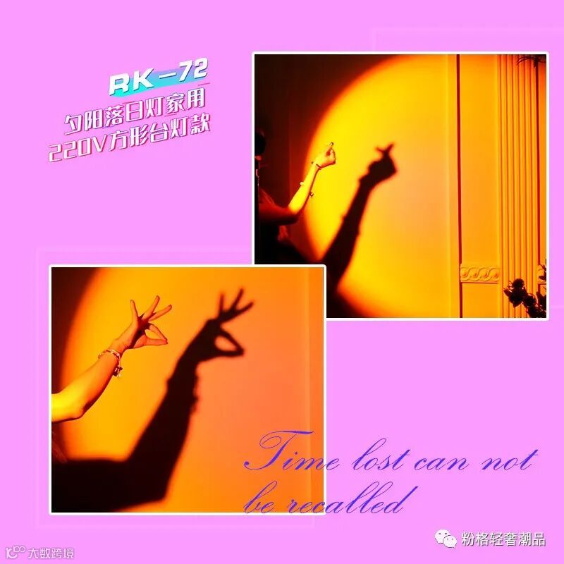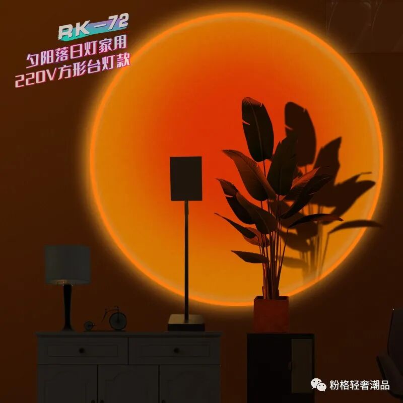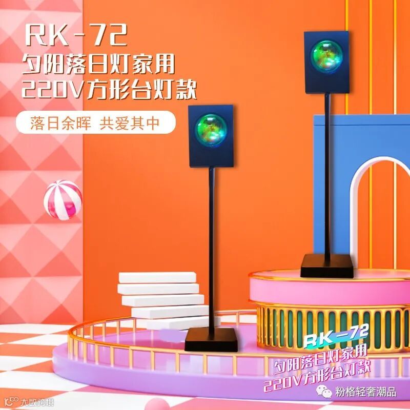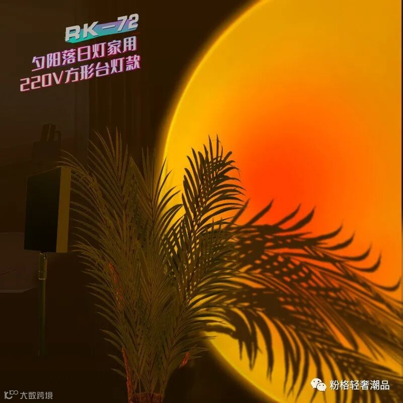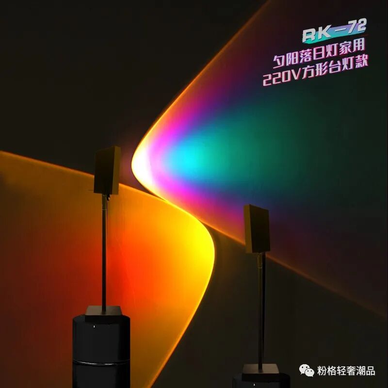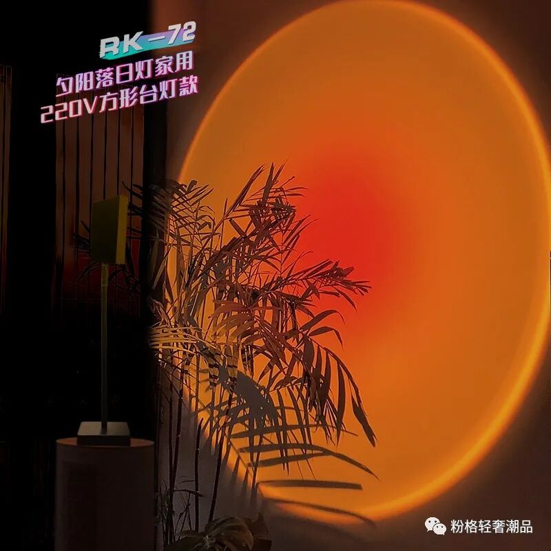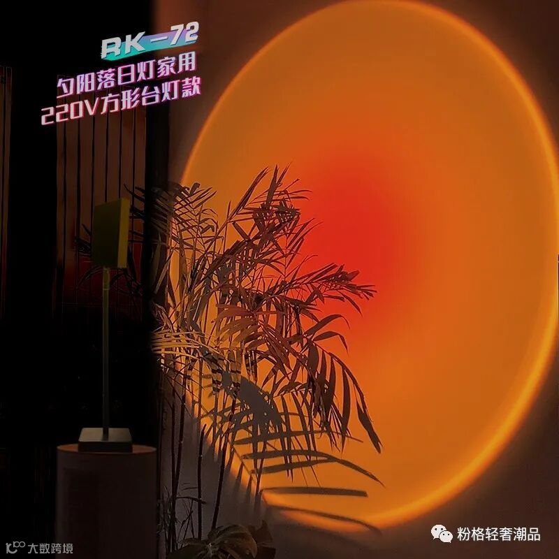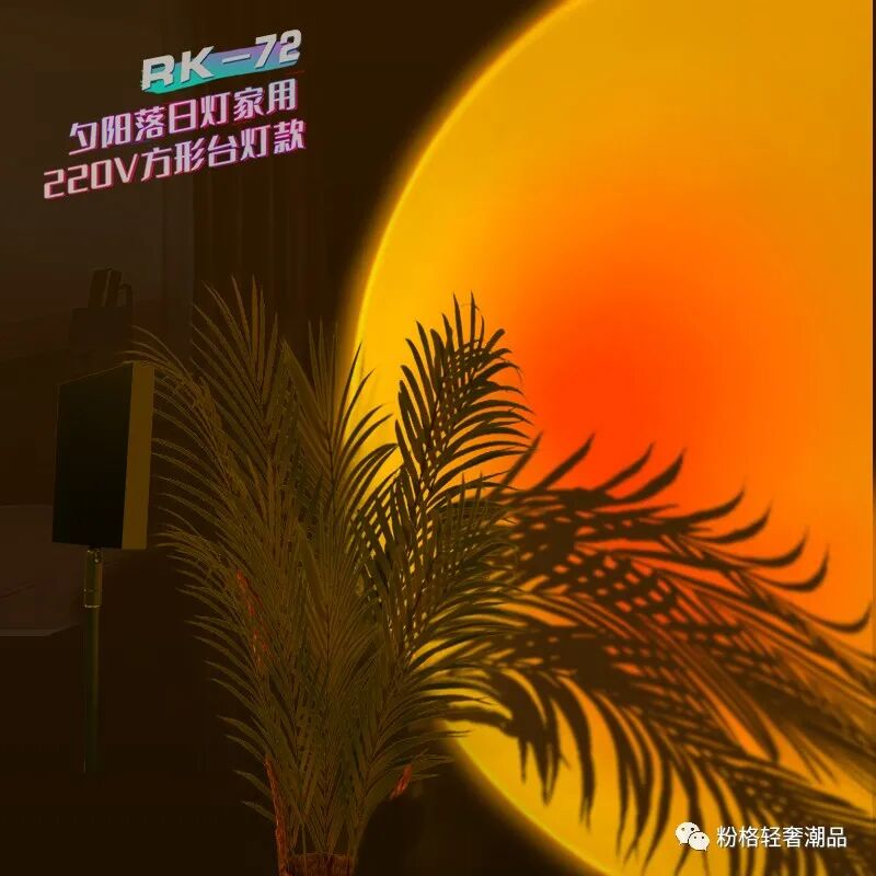 夕阳落日灯RK-72家用220V方形台灯款带你一起在家看日落之美,就像夕阳落在墙壁上,氛围浪漫,网红夕阳落日灯款RK-72是一款电源输入为185V-265V的高亮家用款夕阳灯,打破USB供电不足导致的亮度不够,厚实的散热铝材,长期使用温度不高,网红小姐姐拍摄必备神器,动感舞姿伴侣、各种投影浪漫氛围情景,夕阳落日、雨后彩虹、夕阳红等,自主外观设计,无需担心侵权,销售无忧!