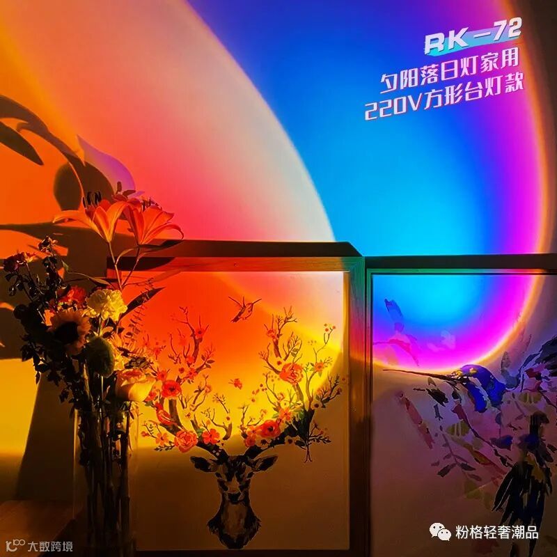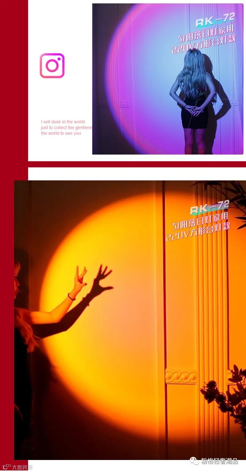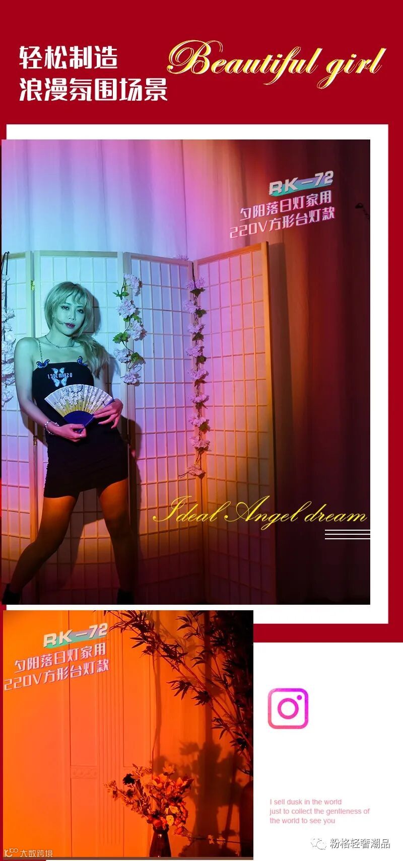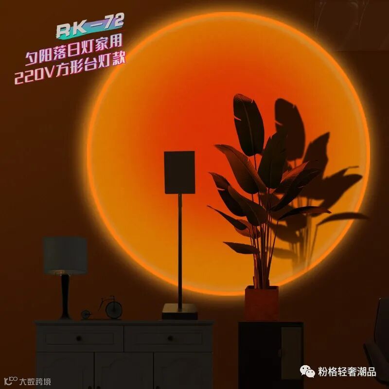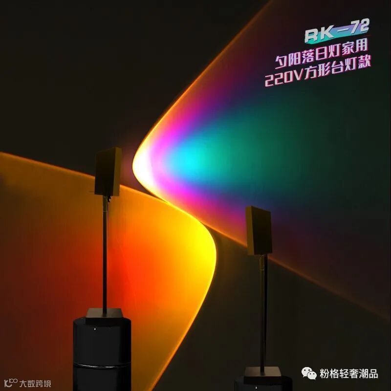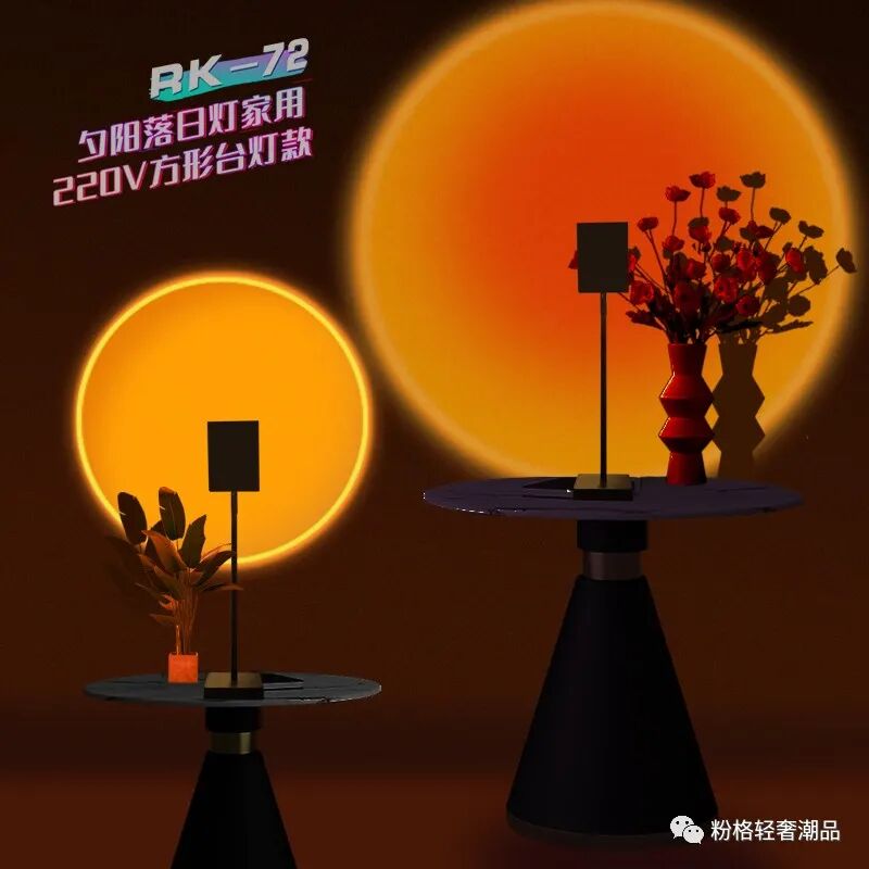 夕阳落日灯RK-72家用220V方形台灯款带你一起在家看日落之美,就像夕阳落在墙壁上,氛围浪漫,网红夕阳落日灯款RK-72是一款电源输入为185V-265V的高亮家用款夕阳灯,打破USB供电不足导致的亮度不够,厚实的散热铝材,长期使用温度不高,网红小姐姐拍摄必备神器,动感舞姿伴侣、各种投影浪漫氛围情景,夕阳落日、雨后彩虹、夕阳红等,自主外观设计,无需担心侵权,销售无忧!