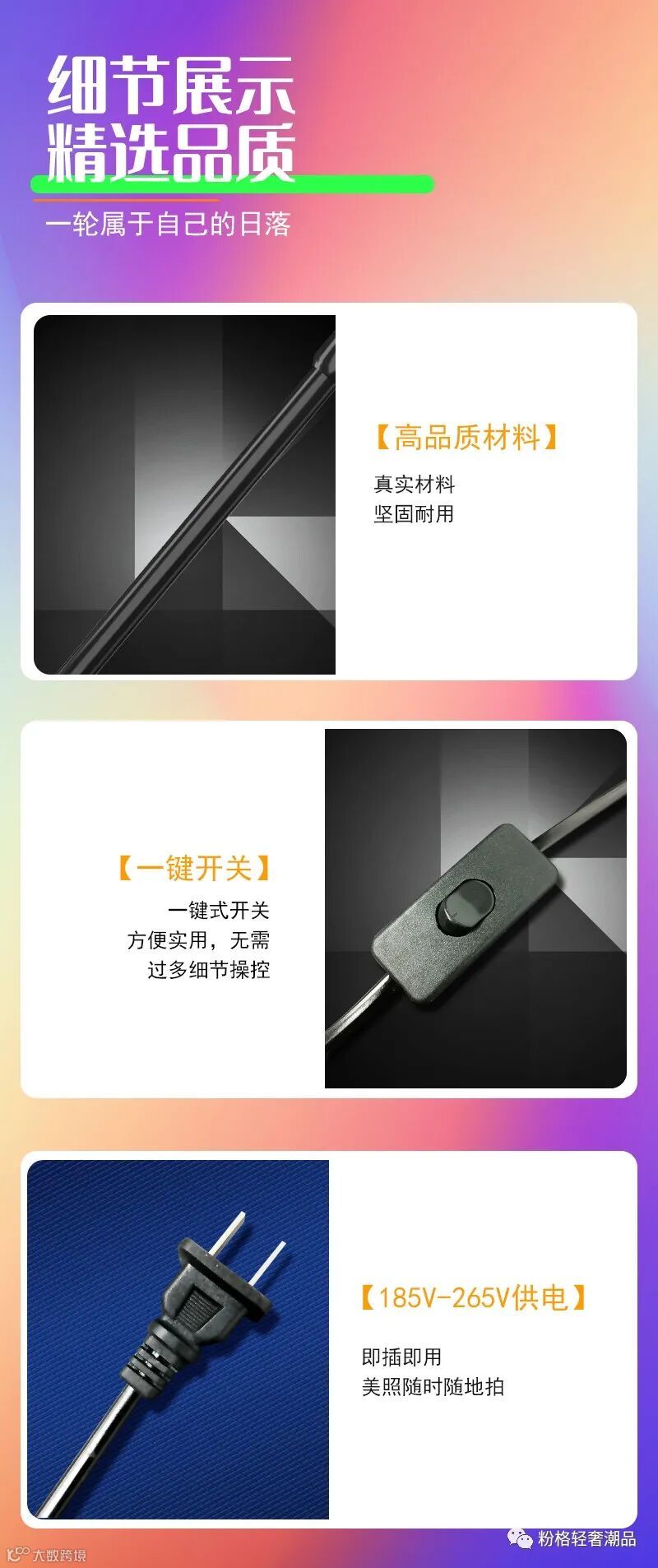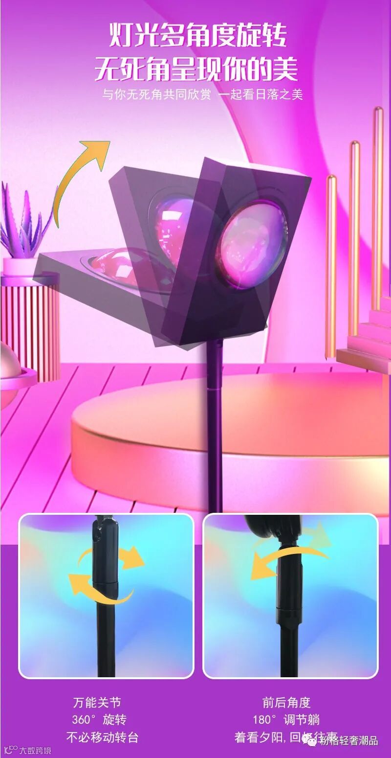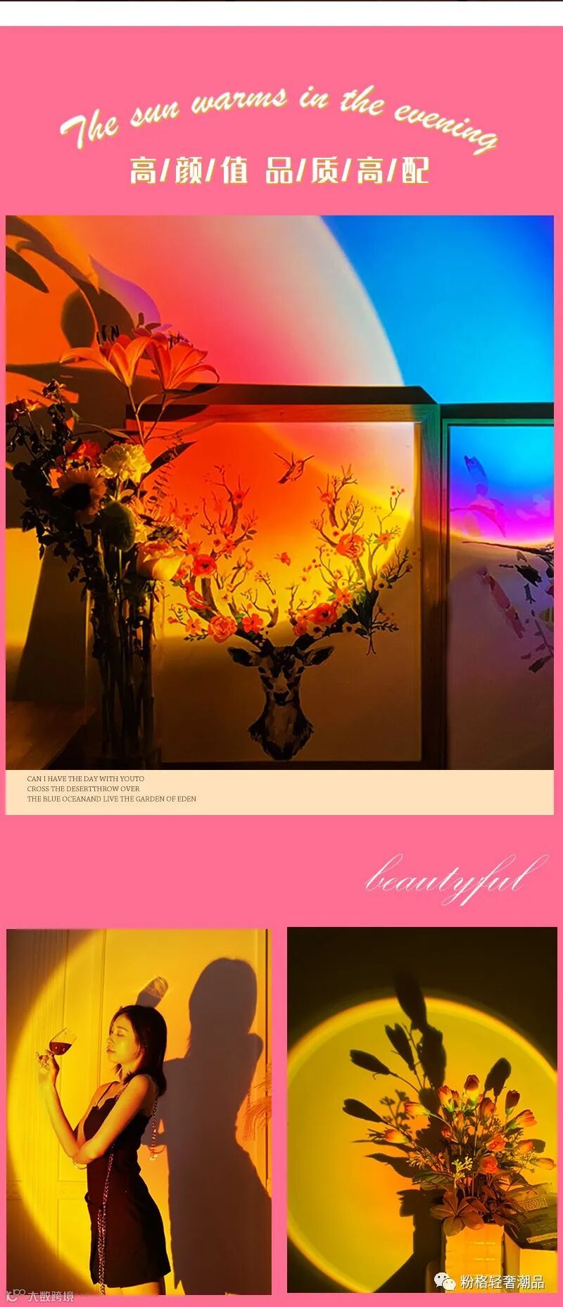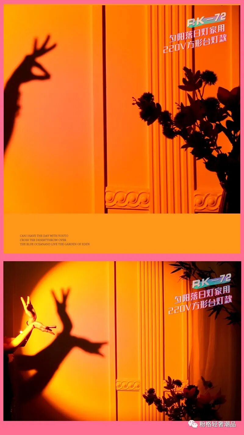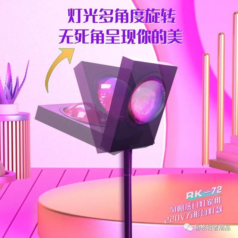 夕阳落日灯RK-72家用220V方形台灯款带你一起在家看日落之美,就像夕阳落在墙壁上,氛围浪漫,网红夕阳落日灯款RK-72是一款电源输入为185V-265V的高亮家用款夕阳灯,打破USB供电不足导致的亮度不够,厚实的散热铝材,长期使用温度不高,网红小姐姐拍摄必备神器,动感舞姿伴侣、各种投影浪漫氛围情景,夕阳落日、雨后彩虹、夕阳红等,自主外观设计,无需担心侵权,销售无忧!