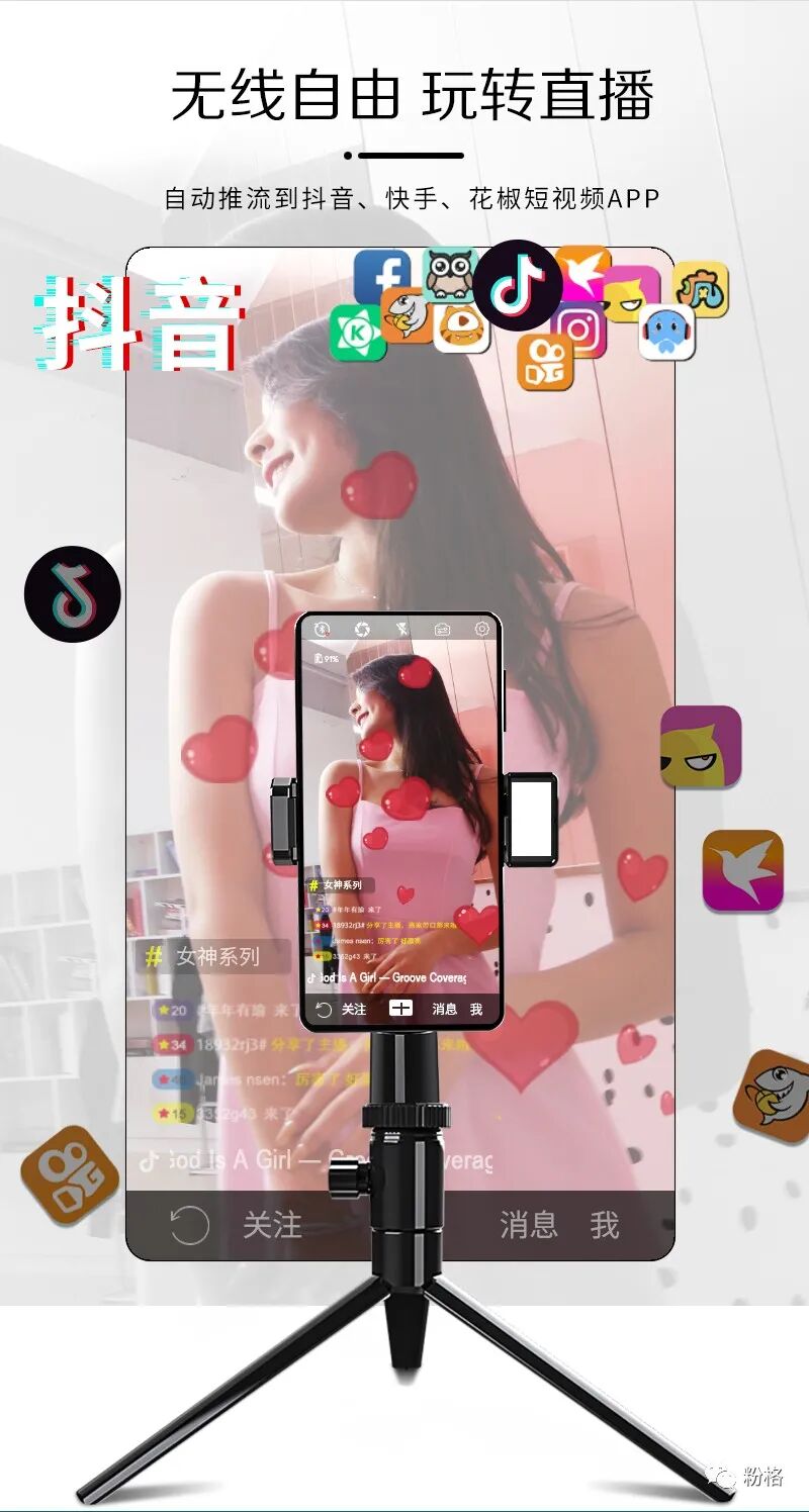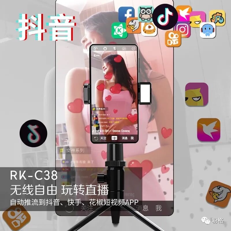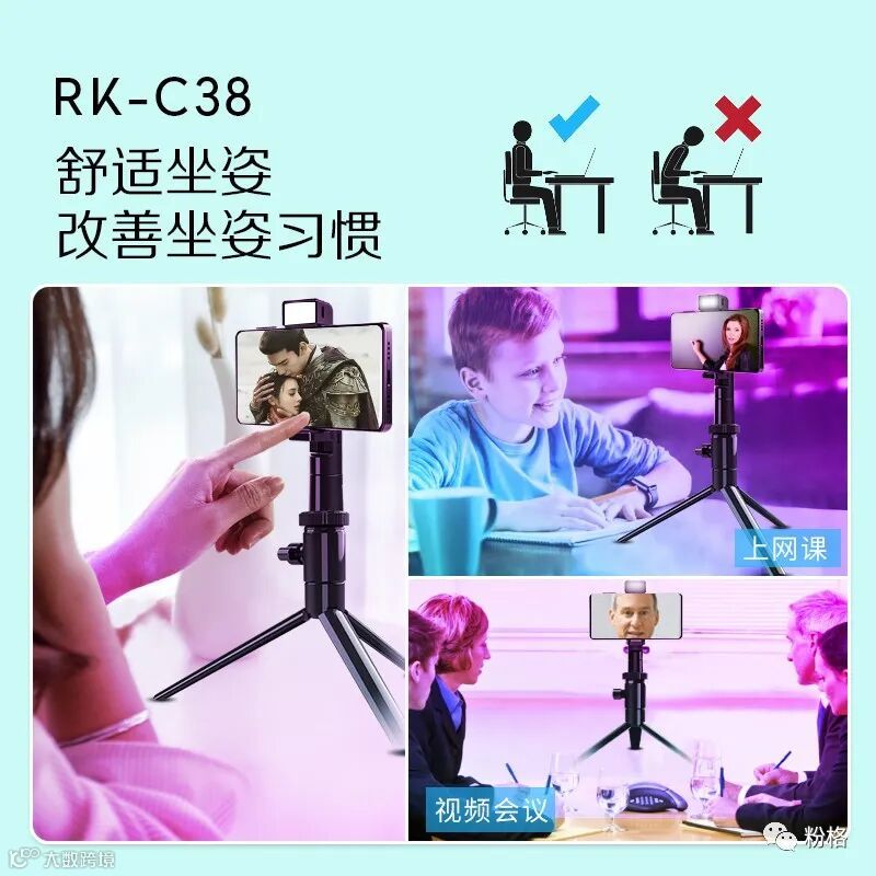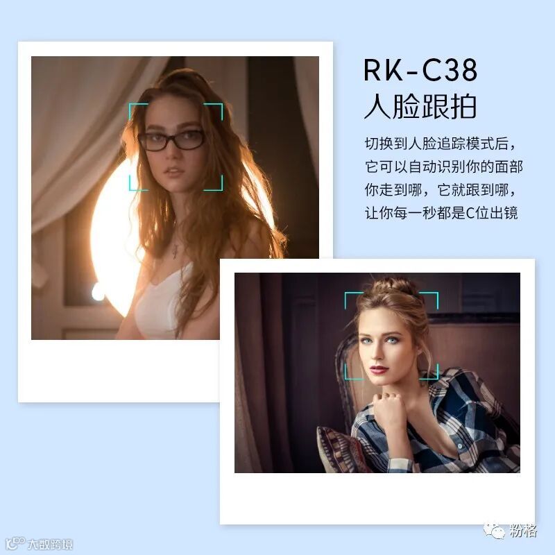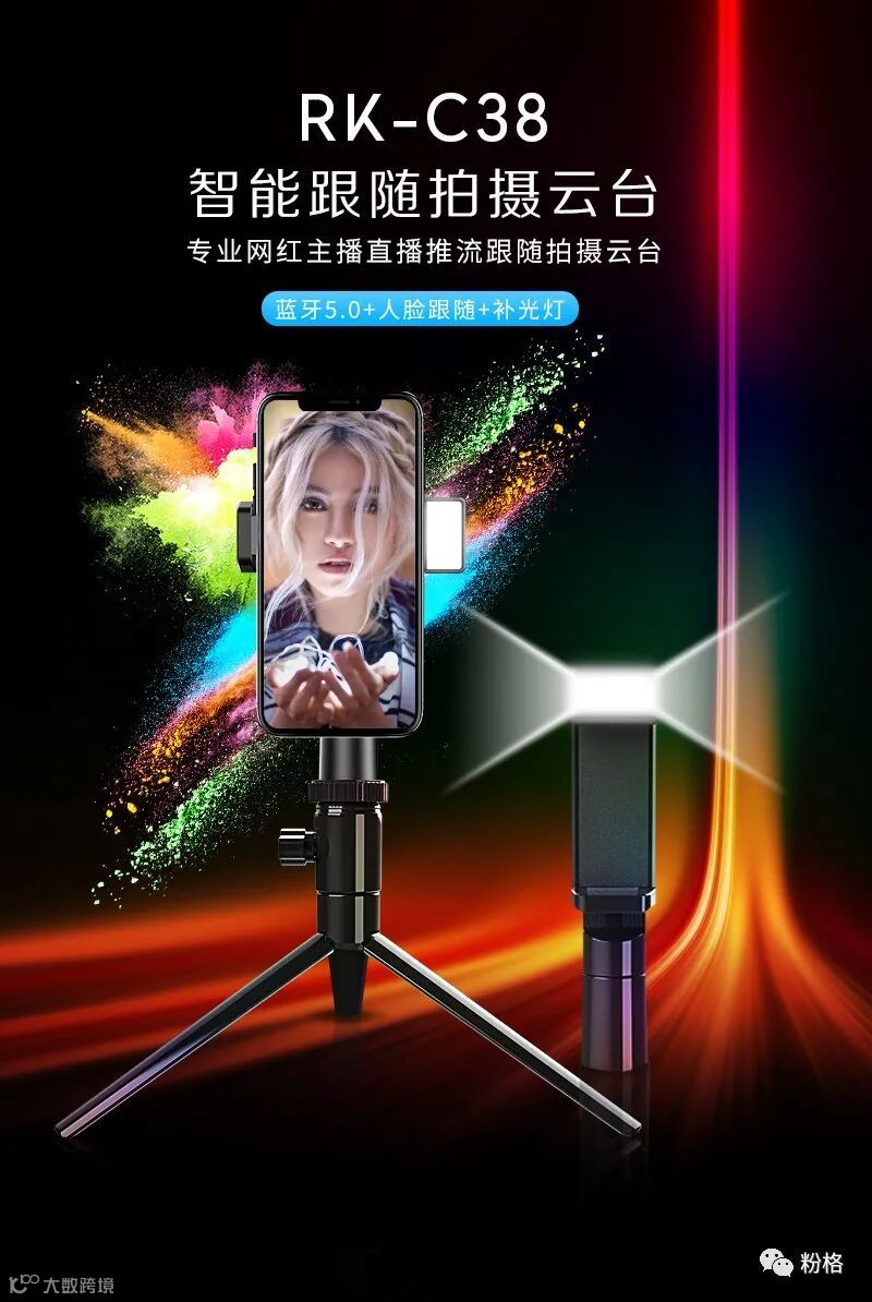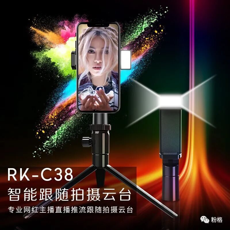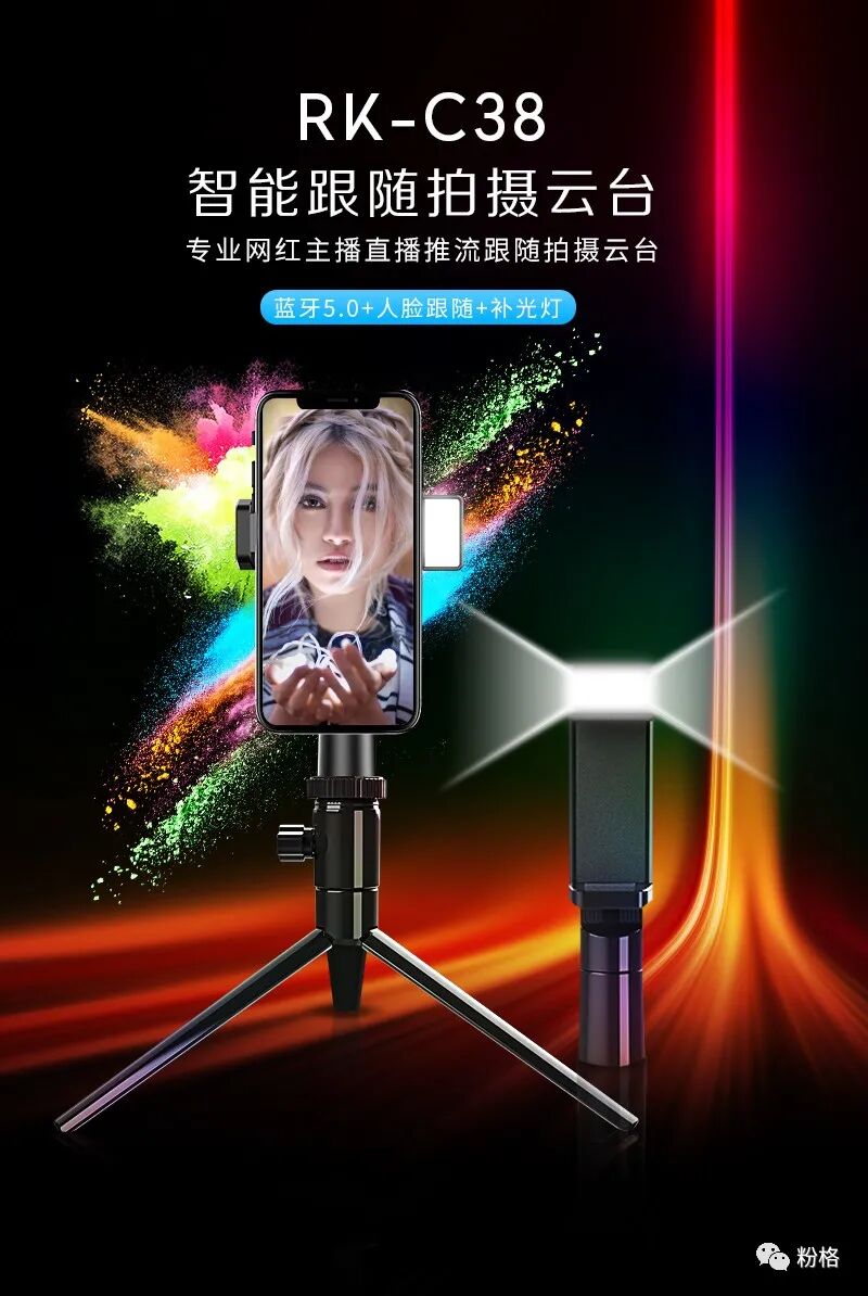 5G直播短视频时代的来临,人人都是自媒体,你我都是潜在网红,自媒体网红的背后都需要更好更专业更简单易用的拍摄工具,专业网红主播直播推流跟随拍摄桌面云台RK-C38她来了!她连通了抖音、快手、花椒等短视频软件,直播时打开RK-C38,360°AI人脸智能识别跟随拍摄,随意任意摆pose,自动推流到抖音、快手、花椒短视频APP,网红主播直播推流跟随拍摄桌面云台RK-C38拥有AI构图及美颜功能,自带美颜补光灯,还可外接三脚架,自拍杆等小巧方便携带,让你拍摄短视频与直播迅速增粉,高品质短视频与直播美颜画面就在一个RK-C38之间,想记忆点滴美好成为网红的你赶紧下手购买吧!