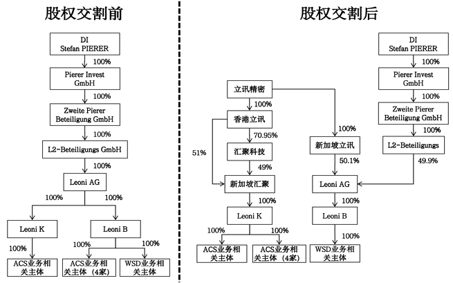 2024年9月13日,立讯精密工业股份有限公司召开董事会和监事会,审议通过了《关于收购Leoni AG及其下属全资子公司股权的议案》。拟通过此次股权交易,收购Leoni AG的50.1%股权及Leoni AG的全资子公司Leoni Kabel GmbH(简称Leoni K)的100%股权,交易总对价约为5.25亿欧元(约合人民币41.28亿元)。旨在通过整合莱尼公司Leoni的技术和市场资源,进一步增强立讯精密在全球汽车线束市场的竞争力。