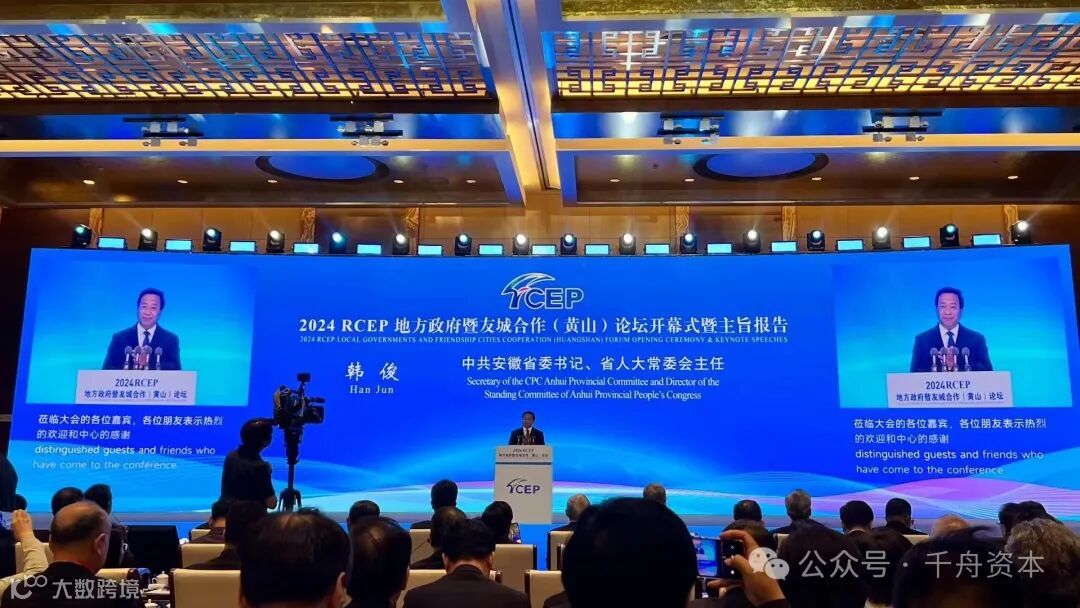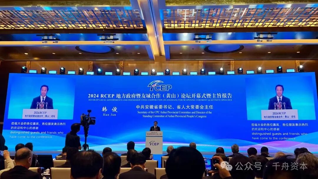 2024年6月21日上午,由中国人民对外友好协会与安徽省人民政府共同主办的2024年RCEP地方政府暨友城合作(黄山)论坛开幕式在黄山市举行。本次论坛以“区域合作 携手发展”为主题,旨在促进与RCEP成员国地方政府间增进了解、探求商机、寻对结好、开展合作,推动安徽省在RCEP框架下的高水平对外开放。论坛开幕式上,中共安徽省委书记省人大常委会主任韩俊、安徽省副省长孙勇等分别致辞。
