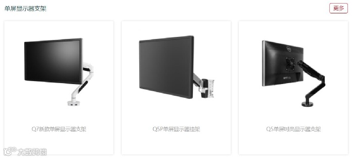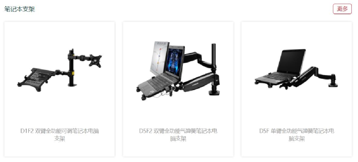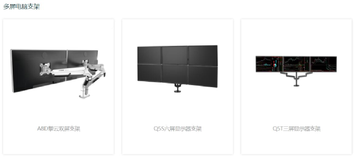 人体工学大屏支架方面,包括了单屏显示器支架、多屏显示器支架、笔记本支架等产品。