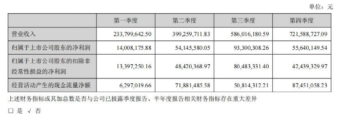 三四季度的营收数据要比一二季度的高不少,但是第四季度的净利润有所下滑。