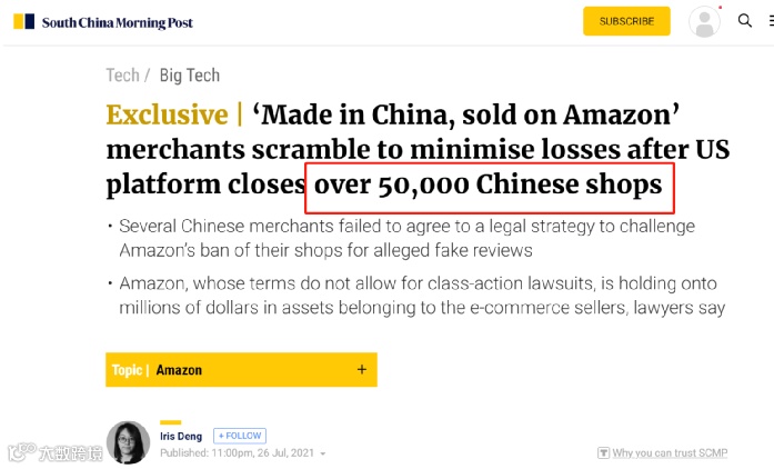 中国卖家被大规模封号的事件,已经闹得全球皆知。近日,《南华早报》报道称,亚马逊至少封掉了5万个中国卖家的店铺。这一轮封号导致的损失总额,也超过了1000亿人民币(深跨协统计)。