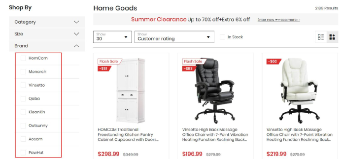 目前从遨森的独立站上,我们能够看到其主要的品牌大致有Aosom、HomCom、Vinsotto、Qaba等。
