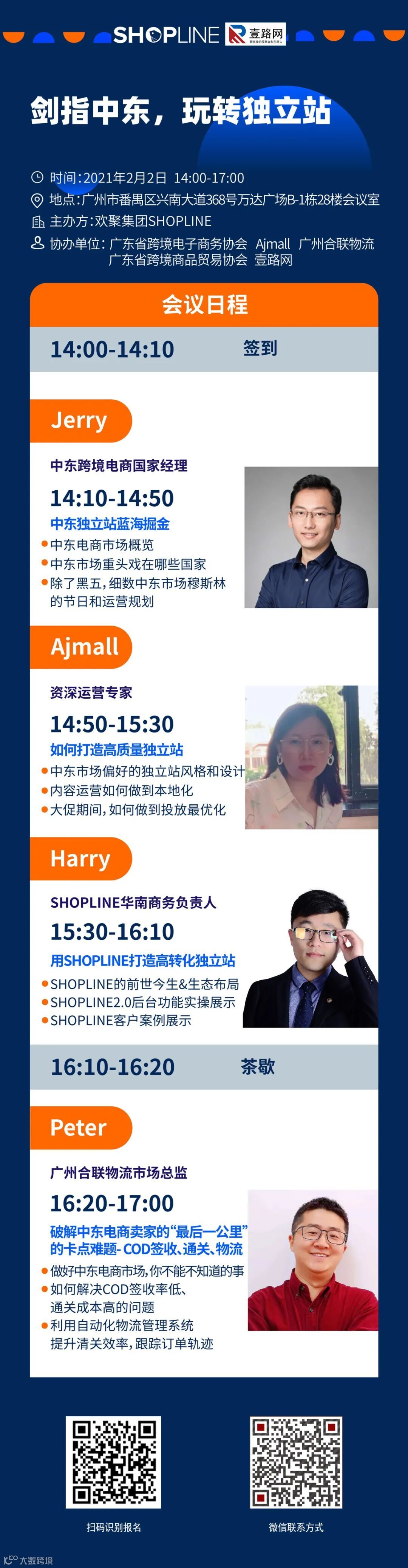 由壹路网协办的“剑指中东,玩转独立站”活动重磅来袭,活动将于2月2日在广州番禺举办。本次活动主办方是欢聚集团shopline,协办单位是广东省跨境电子商务协会、广东省跨境商品贸易协会、壹路网、Ajmall、广州合联物流。