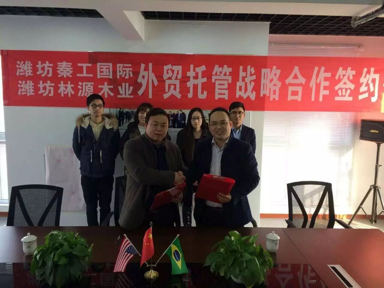 2017年1月16日,潍坊林源木业与潍坊秦工国际达成外贸托管战略合作,潍坊林源木业正式托管入驻潍坊秦工国际贸易托管中心,自此林源木业结束了没有国际贸易团队的时代,开启了国际市场拓展的新篇章,将在秦工的外贸托管教练指导下开展工作,开拓国际市场。
