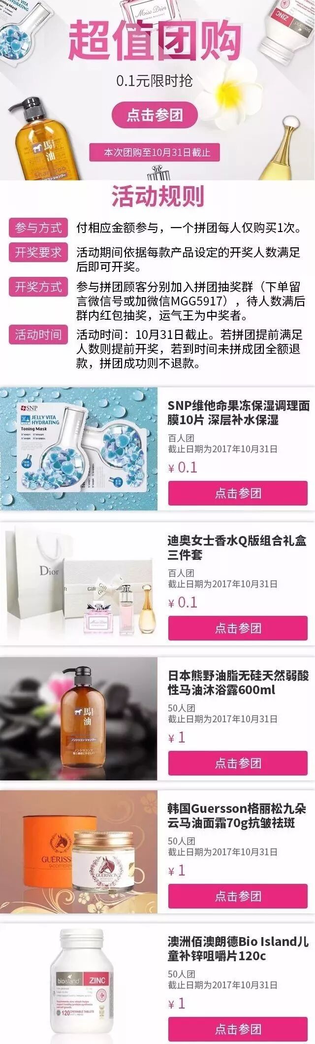 从上周至今,走失一群参与“0.1元拼团”的好心人,我们的客服妹妹抱着一堆迪奥香水,现目前正在寻找失主!请各位好心人看到消息后,添加客服微信:“MGG5917”,客服小妹将于10.31日活动截止后,揭晓以上这些全球好货的最终得主,好人一生平安!