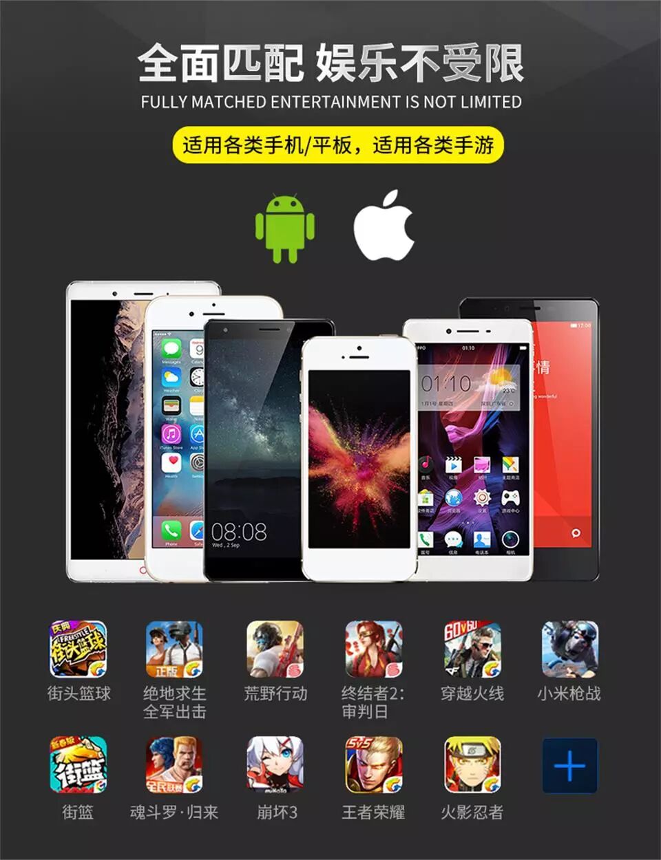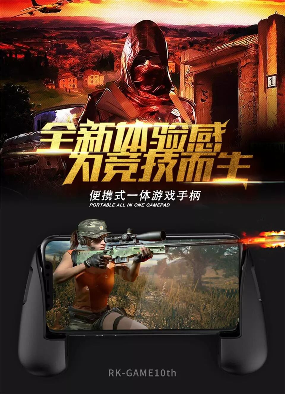专业级吃鸡一体式+王者荣耀刺激便携式合二为一,让你吃鸡“精”“准” “狠”!真的大吉大利哦!鼠标人体工程学设计 ,内部变形组合式创意一体化防丢设计,自主外观与实用新型专利,至尊版RKGMA-11代游戏手柄来袭!放心销售吧!创意一体手游游戏手柄领导者!让你的手游必胜!(最新福利哦!有年轻时尚的潮牌大红版本供个性人士选择)