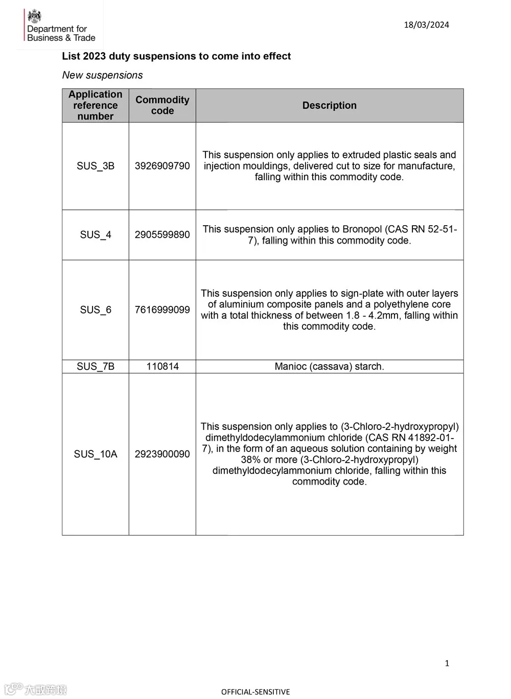 我们外贸企业需要注意的是,部分暂缓关税适用于同一产品的不同税目,选择暂停征收哪些关税的主要标准是“相同或类似的产品不在英国或属地生产,生产数量不足,或者生产暂时不足”,所以外贸企业需查询到准确的海关编码,确认产品是否符合免税要求。