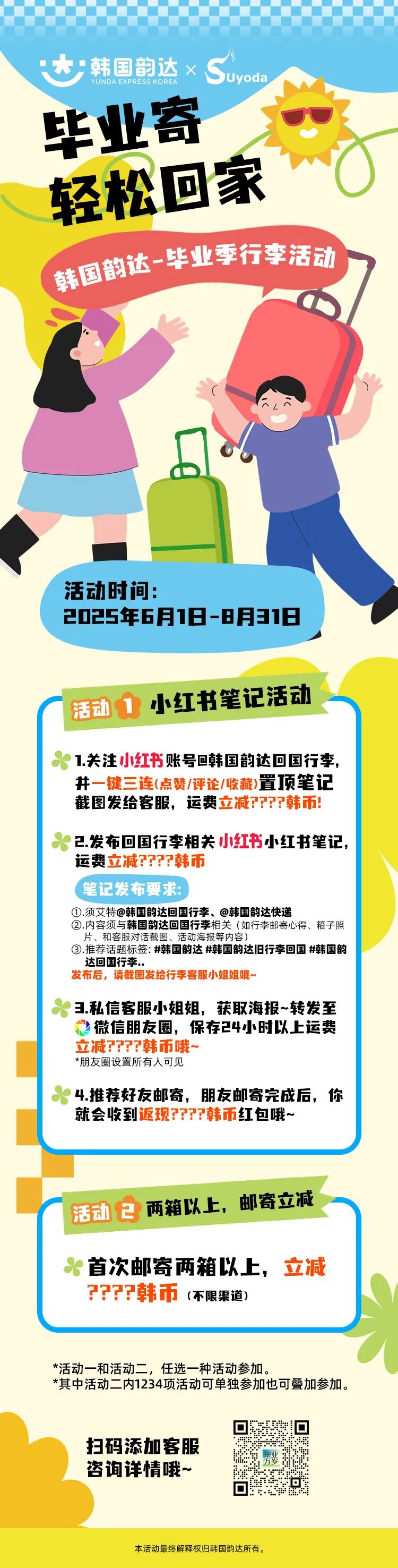 【回国行李】毕业寄,韩国韵达守护您的跨国回忆