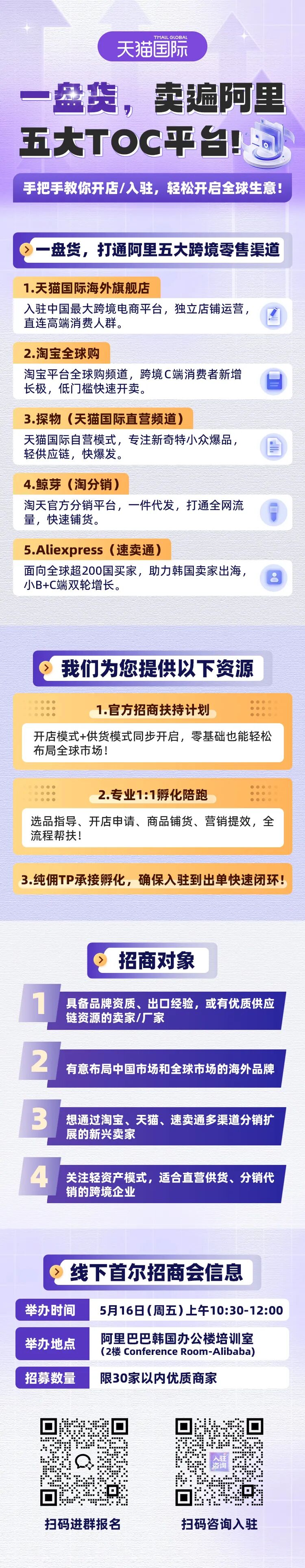 韩国品牌商家注意啦!一个仓库的货卖遍阿里五大平台!