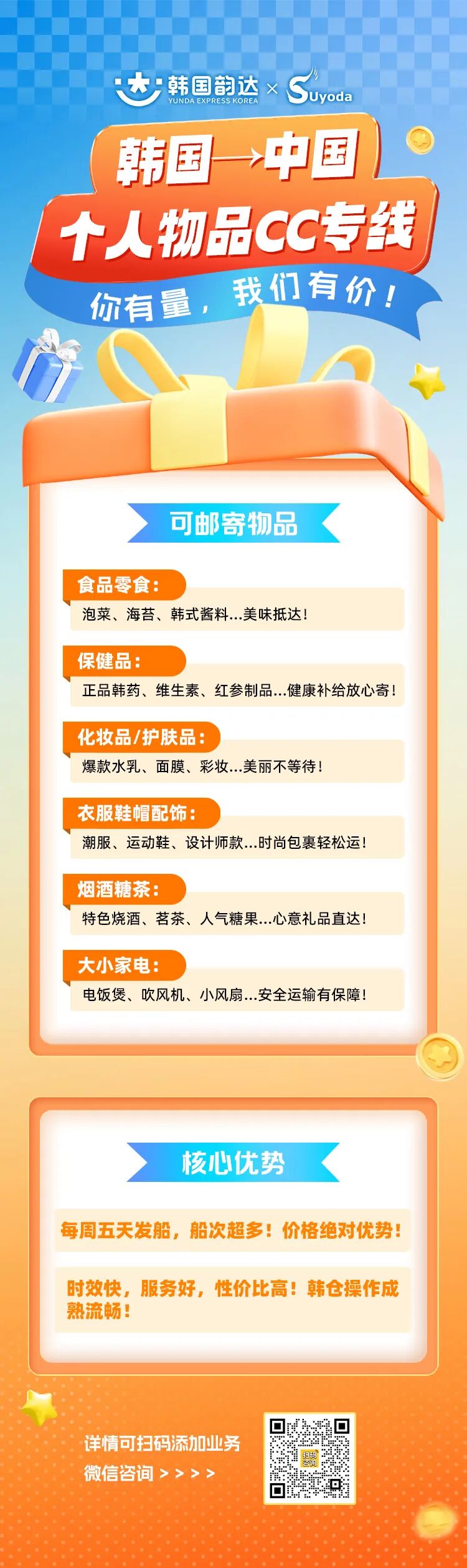 导读:02韩到中个人物品邮寄服务美味零食、健康补给、时尚单品、心意好礼...你在韩国买的一切,我们安全快速送到家!