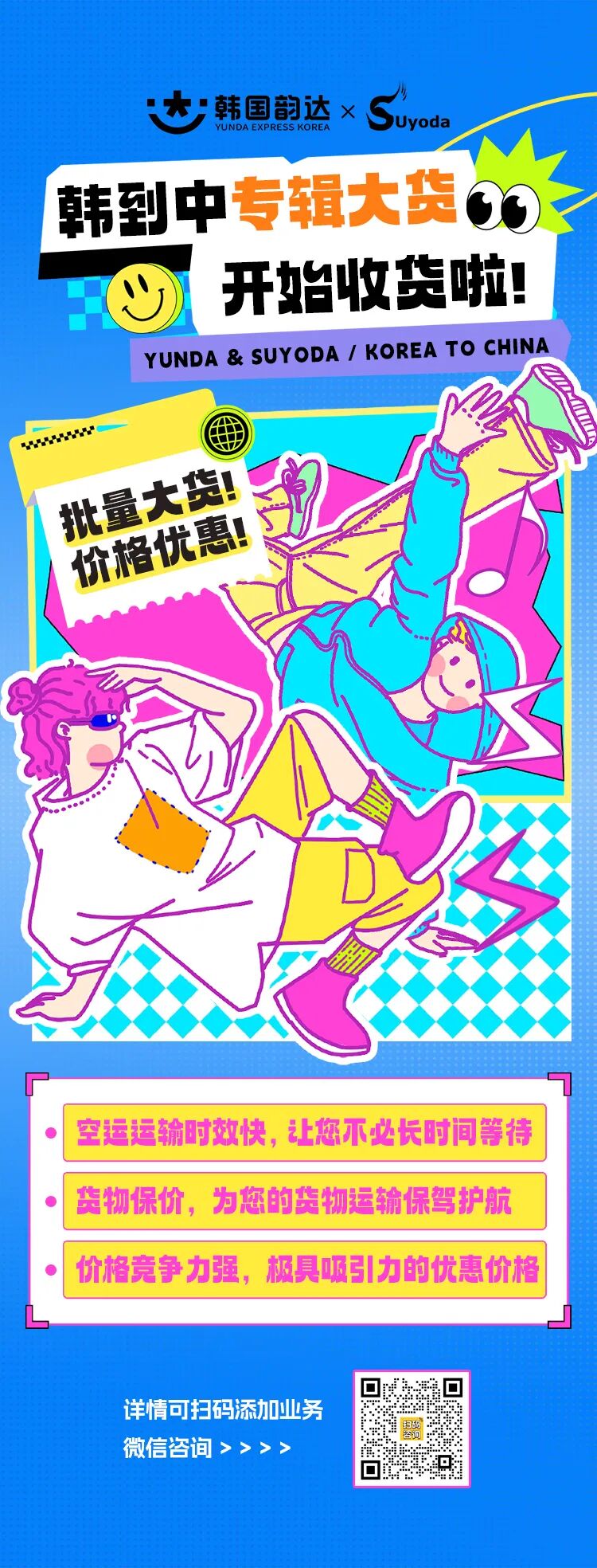 导读:韩到中专辑大货邮寄服务“站子运专不再肉疼!韩国→中国专辑大货通道正式击穿底价”空运保价全包, 量大更优!
