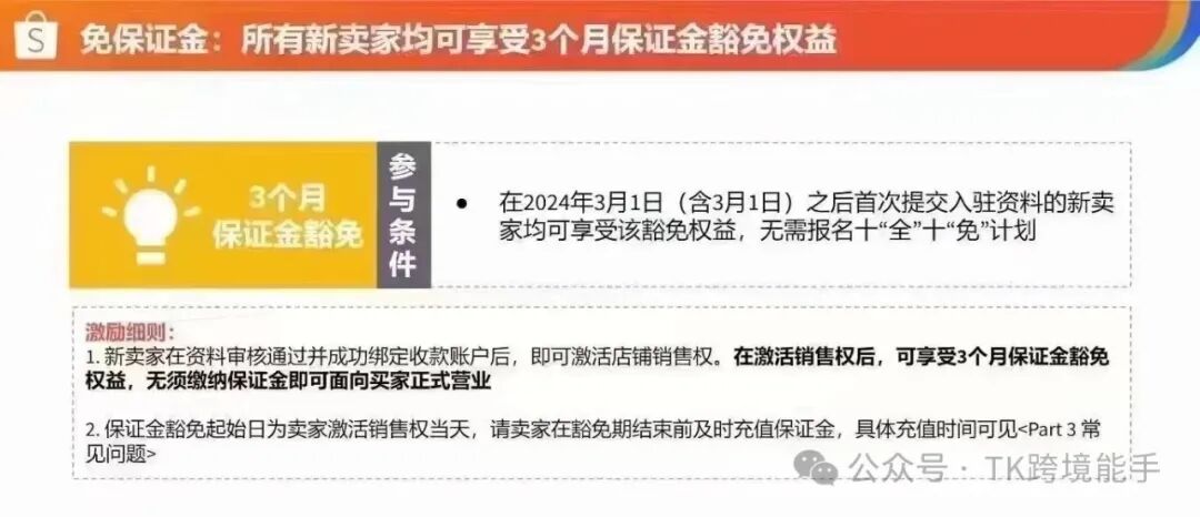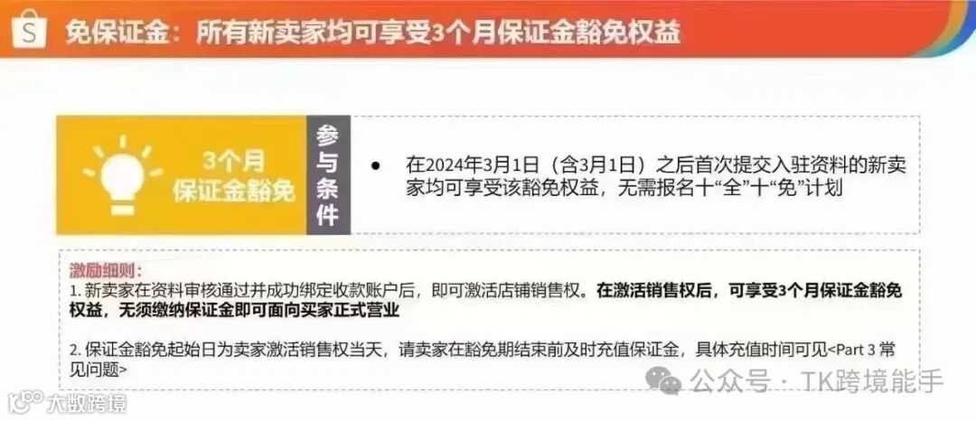 TK跨境能手虾皮新入驻的卖家可享前三个月免保证金政策,需要代入驻的来虾皮跨境多站定制,