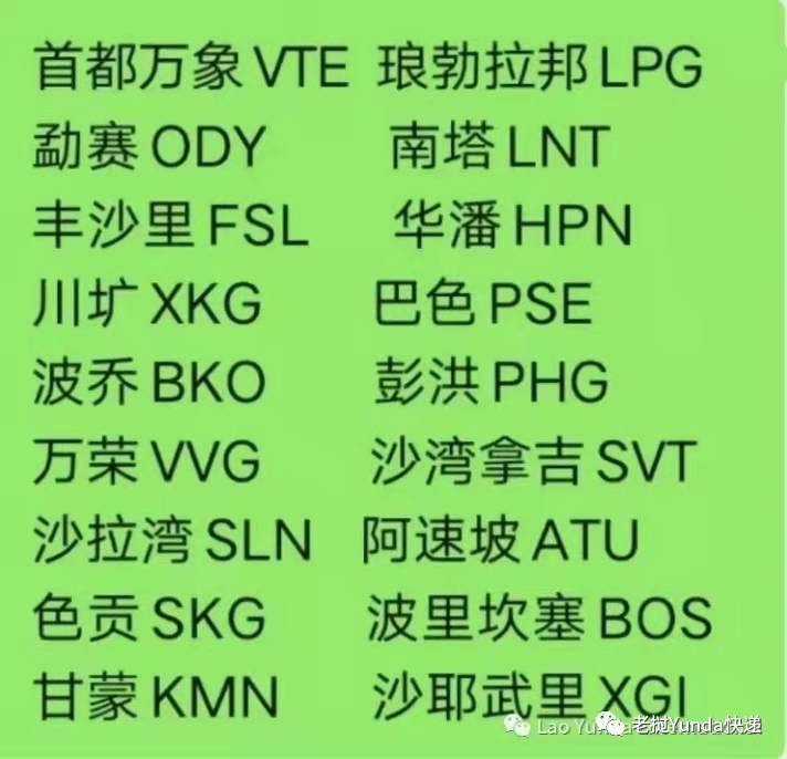 老挝韻達快递招以下片区加盟代理商:万象市区、万荣、沙湾拿吉、阿速坡、色贡、琅南塔、金三角特区,有意者联系8562022267777微信同号