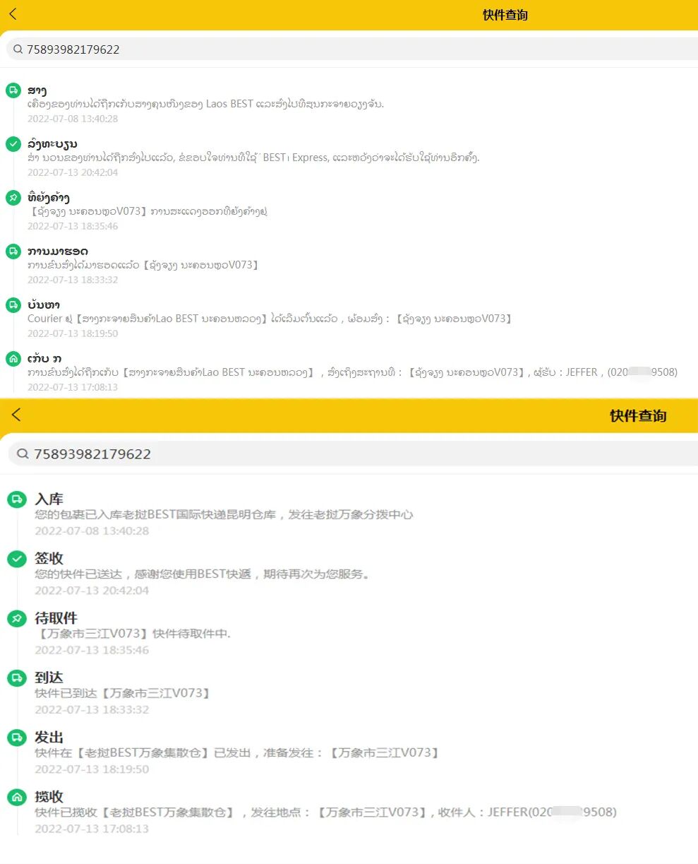 输入原单号全程查询跟踪,快递查询请复制“http://manage.xmego.cn/apk/LAOSBEST.apk”到谷歌浏览器下载中老双语App注册使用