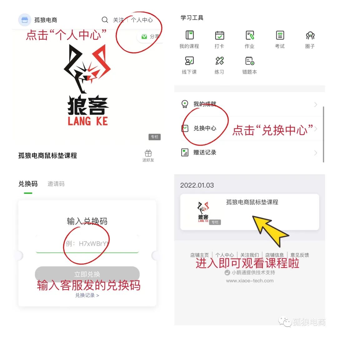 微信扫描鼠标垫右下角二维码关注“孤狼电商”公众号或者直接微信搜索“孤狼电商”。以下是操作流程: