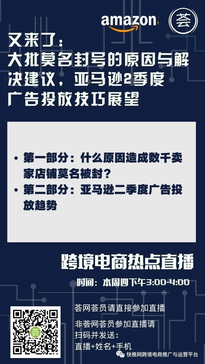 导读:【重要直播 - 中美对话】本周三,4月28日 早上10:00-11:00,亚马逊Q1广告数据分析与Q2运营展