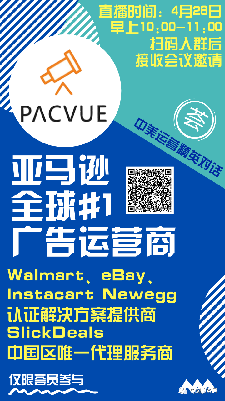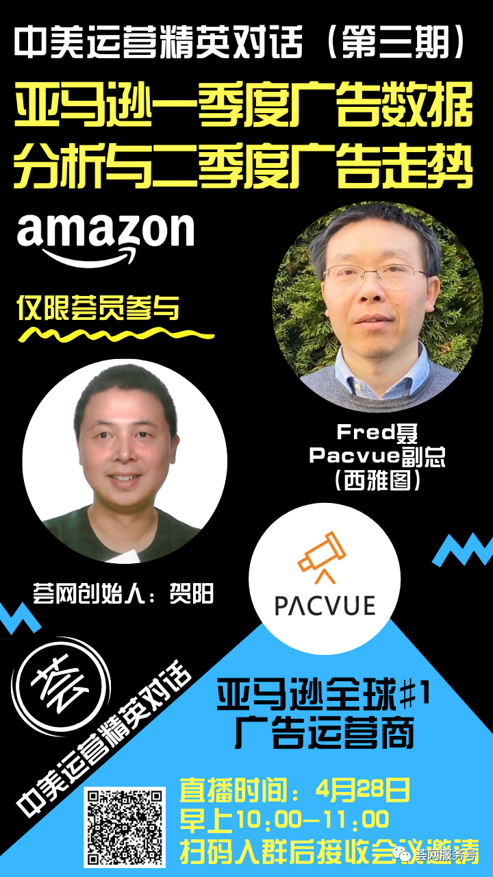 【重要活动 - 中美对话】直播时间:4月28日 早上10:00-11:00 亚马逊Q1广告数据分析与Q2运营展望,沃尔玛广告打法