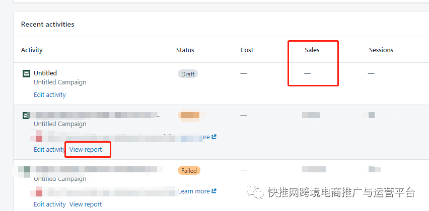 邮件发送成功之后,我们还可以看到具体的数据,收入多少,如果想要看详细数据,有多少人打开,点击我们邮件,到达网站用户,加购多少,我们可以通过view report去查看的。