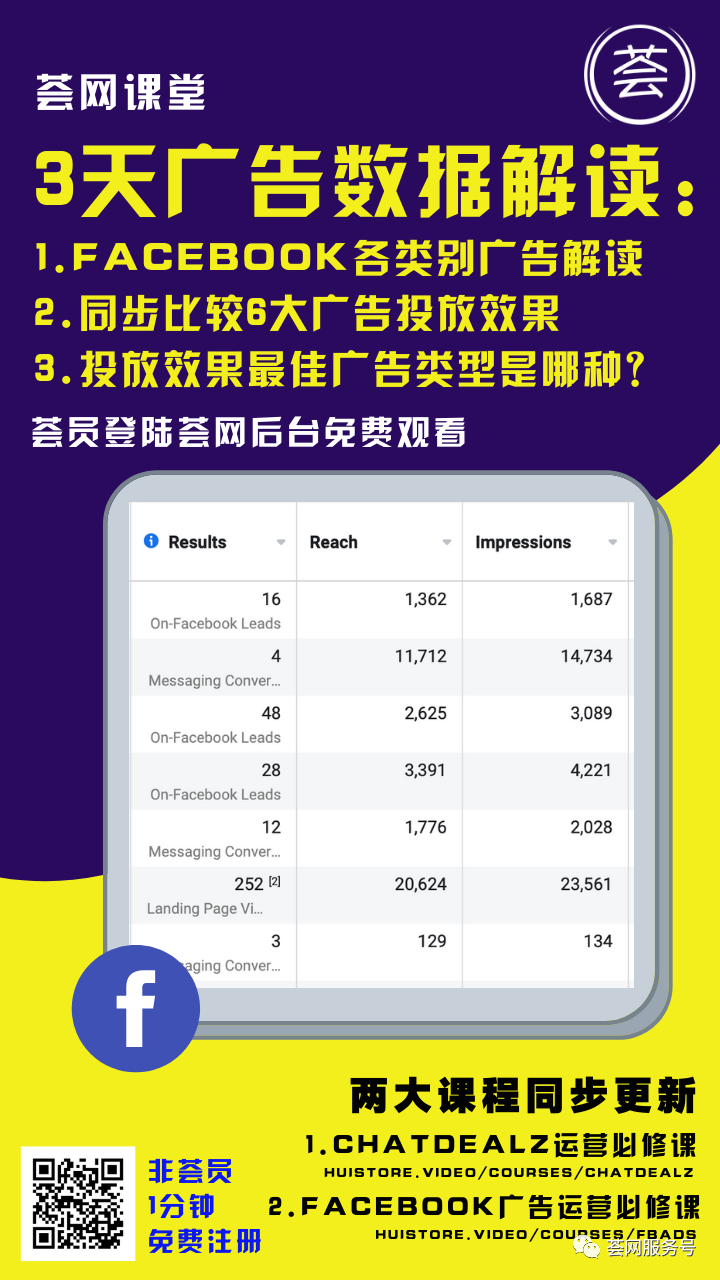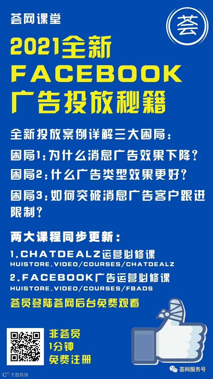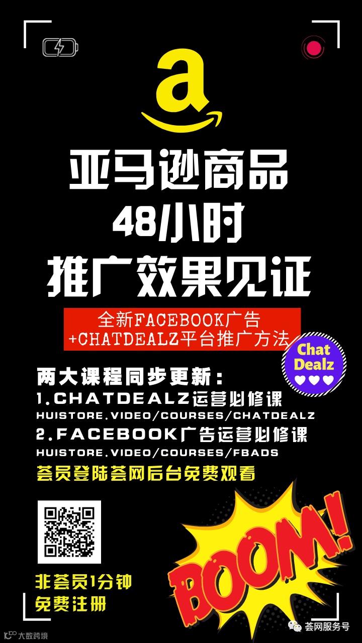 【荟网课堂 - 新课上线 】见证:48小时,亚马逊商品通过Facebook广告+Chatdealz平台推广效果,荟员可直接免费安装应用并观看课程。非荟员请扫码1分钟免费注册。